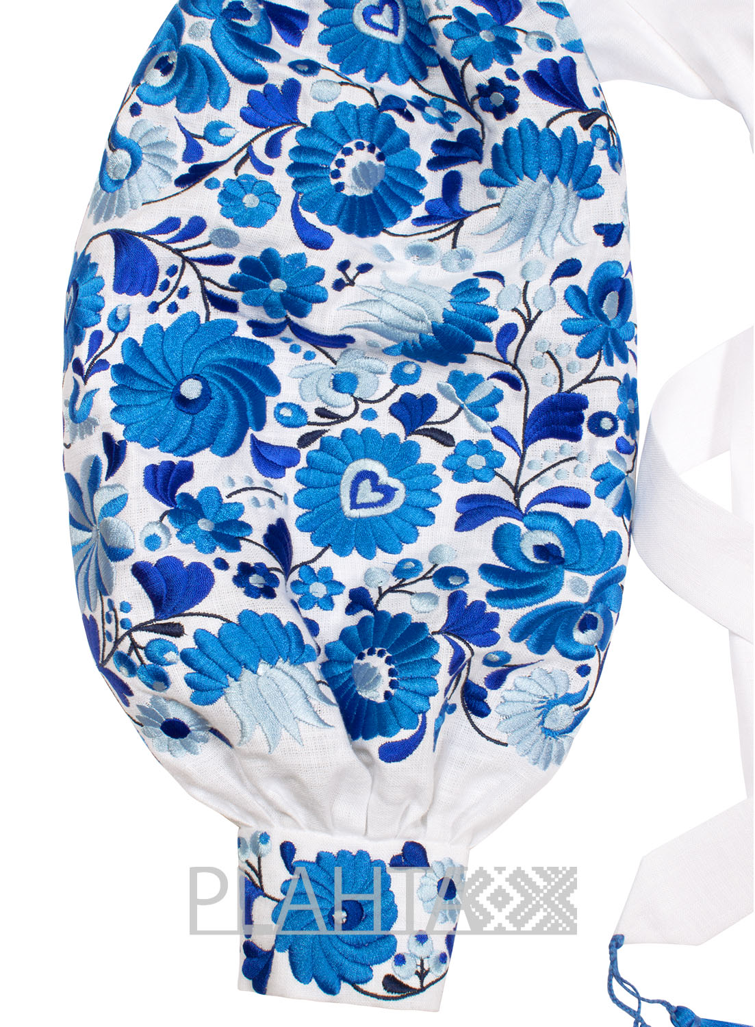 Довжина - 68 см. На планці - застібки-кнопки. Горловина і рукава виконані в традиційних українських техніках - "збиранка" та "пухлики". На рукавах - застібки-гудзики.