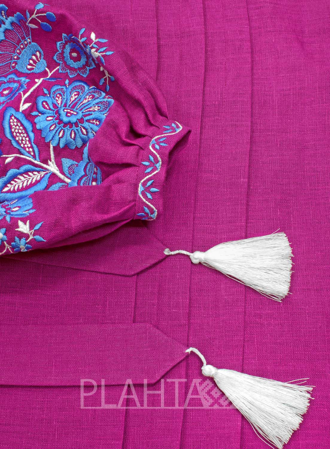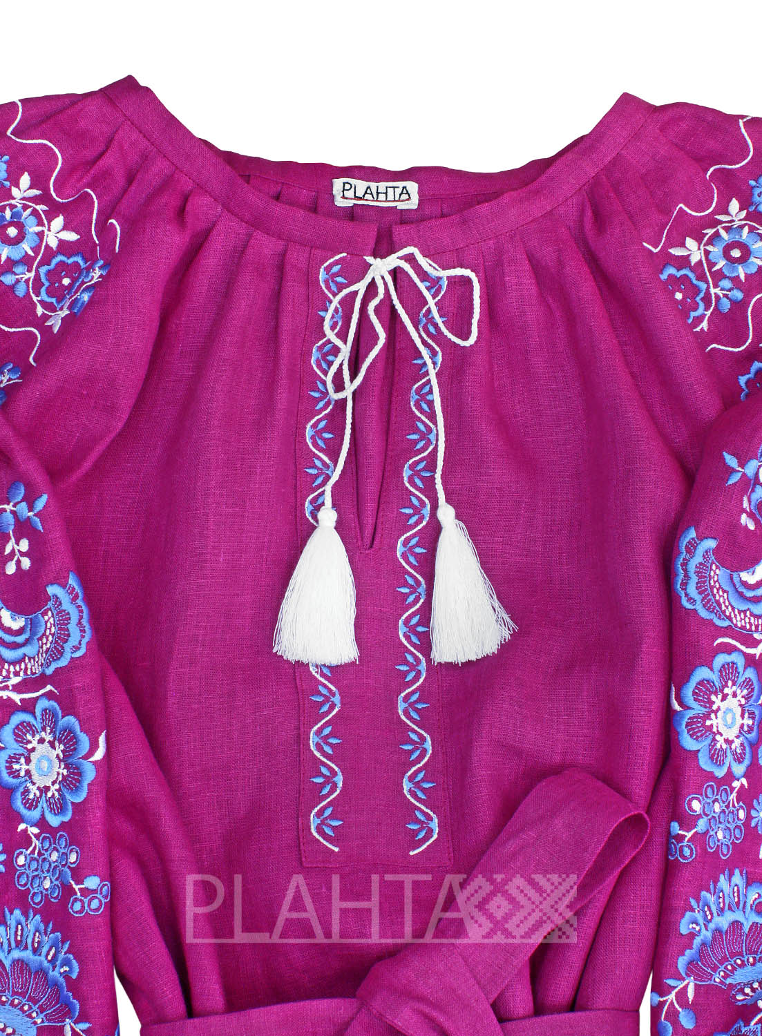 Помітне і ошатне "Диво-Дерево" в кольорі фуксії - плаття-вишиванка в новій, нестандартній, сучасній подачі. У такій сукні складно залишитися непоміченою, адже вона створена, щоб привертати увагу і зачаровувати. Завдяки поєднанню контрастних кольорів і яскравої автентичної вишивки в українському стилі, "Диво-Дерево" відповідає всім критеріям сучасних модних тенденцій і сміливо може стати "родзинкою" будь-якого жіночого образу - ділового, вечірнього або молодіжного.