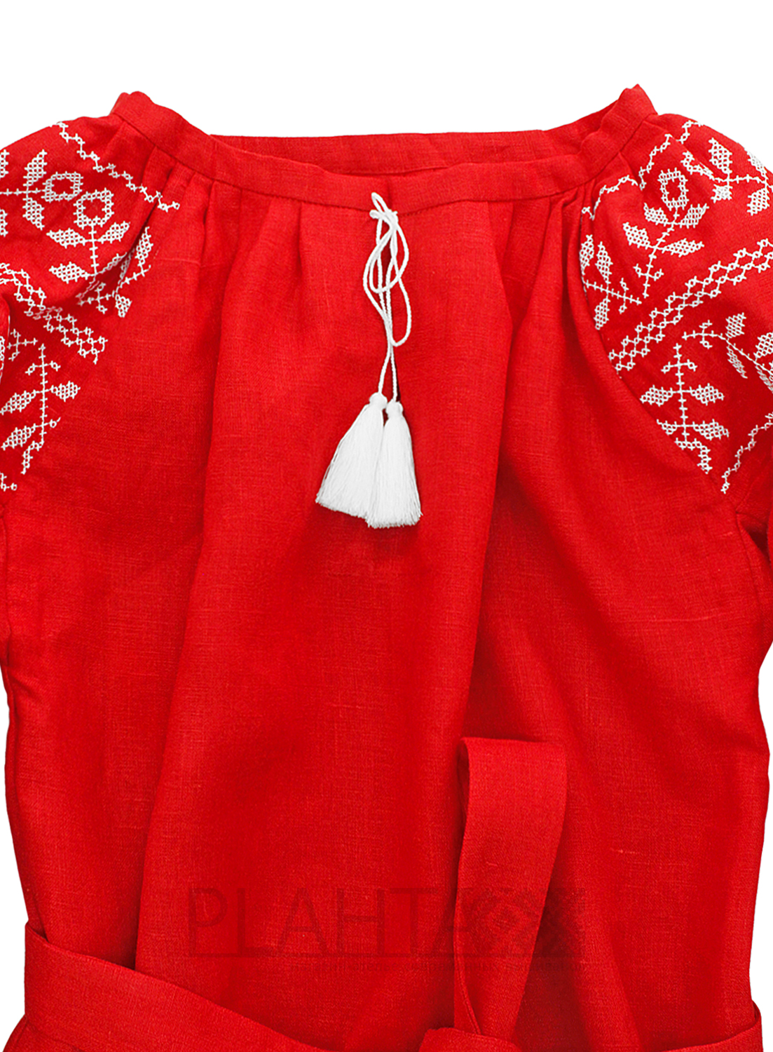 Туніка яскраво-червоного кольору з вишивкою троянд - яскравий автентичний елемент гардероба впевненої жінки. Українська вишивка в сучасному контексті безумовно набирає обертів у світових тенденціях.
