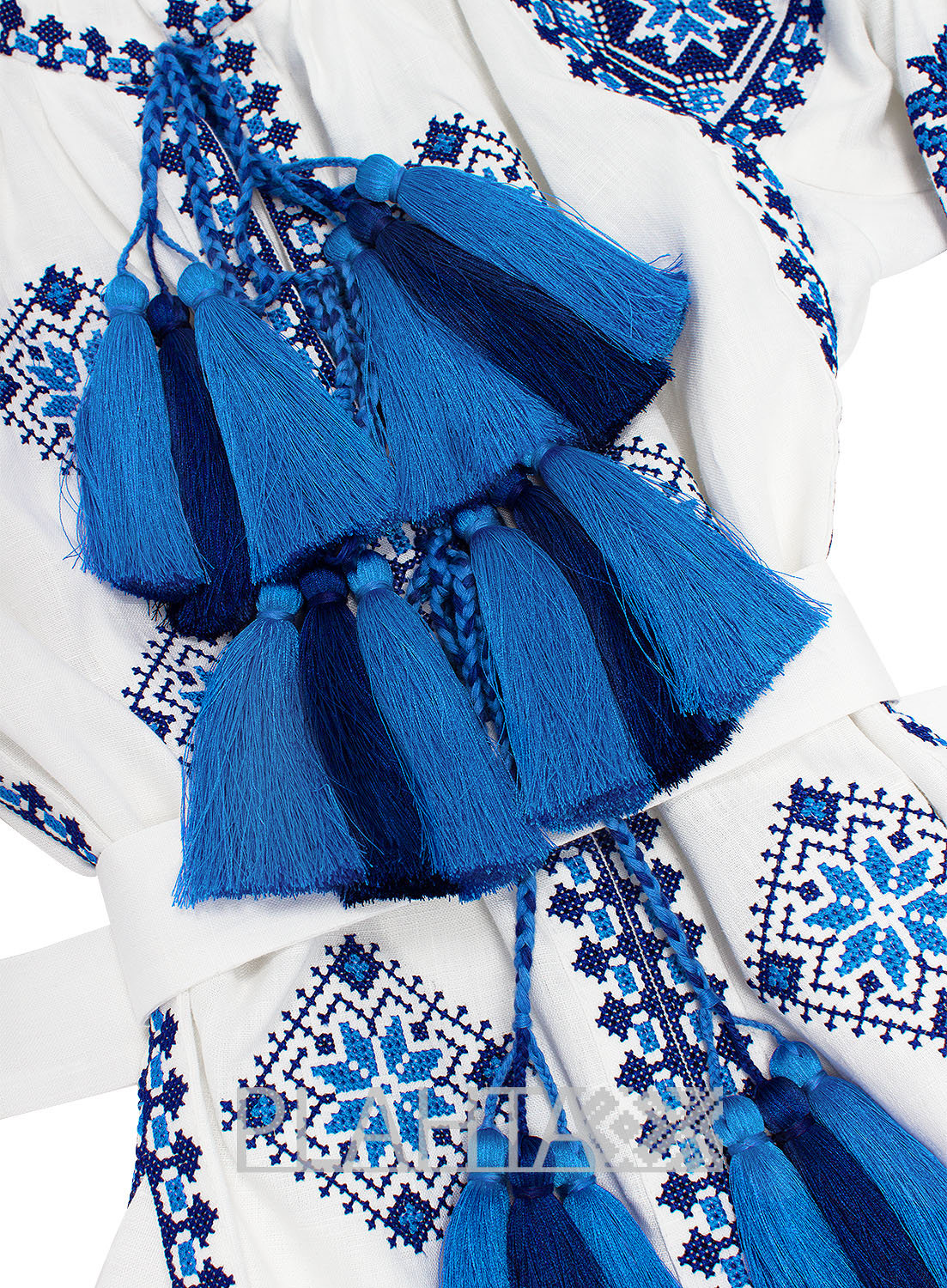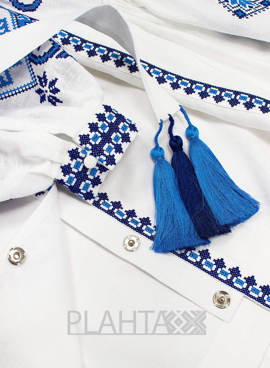 Довжина - 86 см. На планці - застібки-кнопки. З боків сукні клини, прикрашені вишивкою. Горловина і рукава виконані в традиційних українських техніках - "збиранка" та "пухлики". На рукавах - застібки-гудзики. Вишивка хрестиком зроблена на промислових японських вишивальних машинах якісними нитками, що не линяють. Виріб зшитий вручну нашими майстринями.