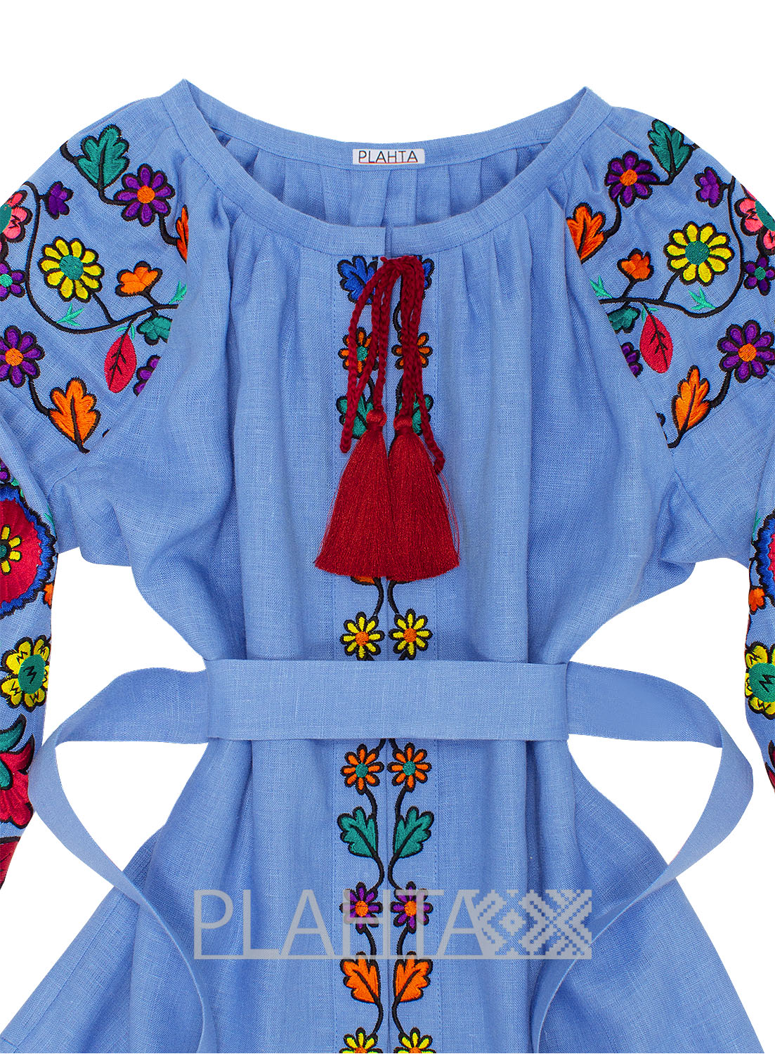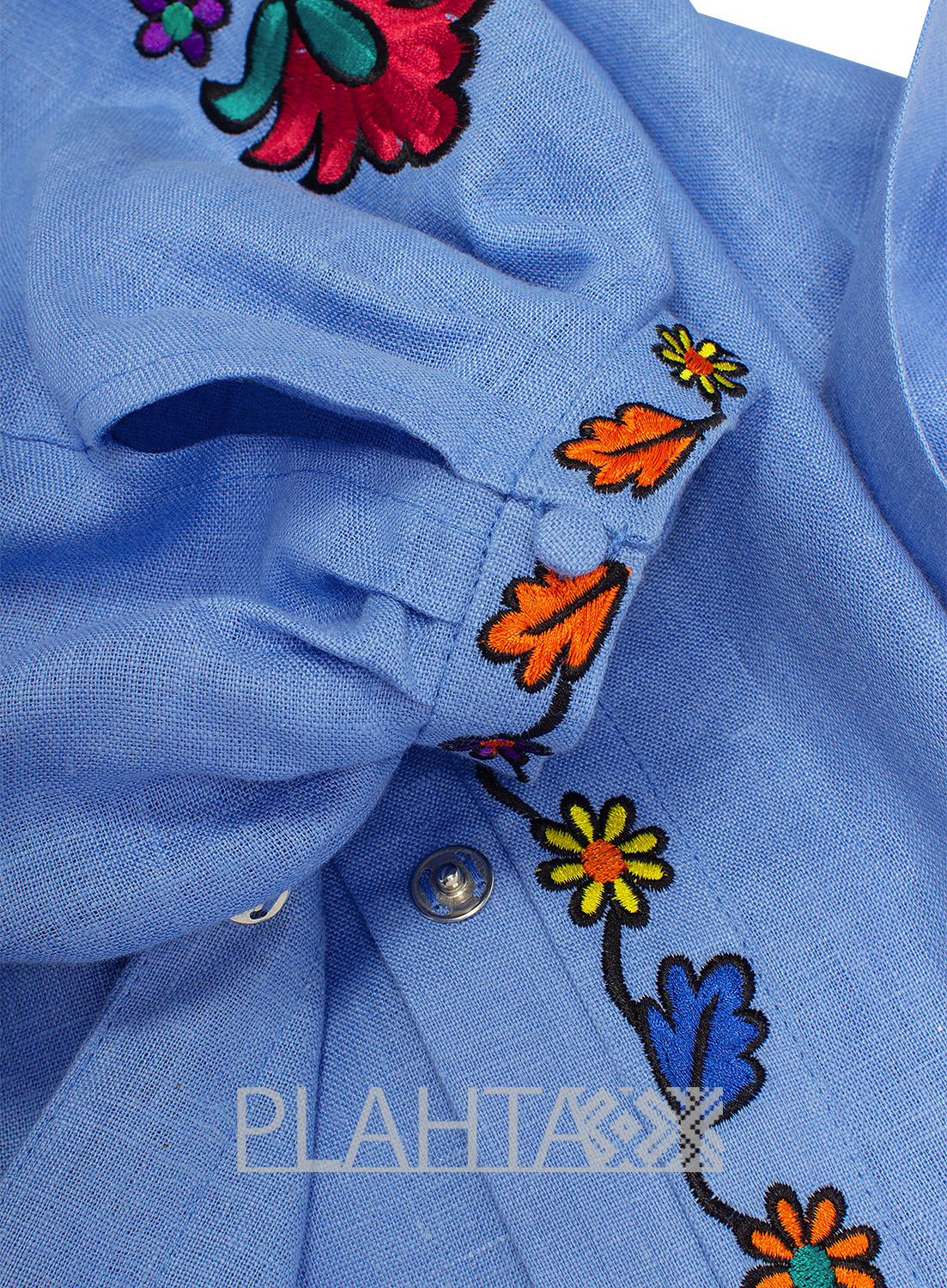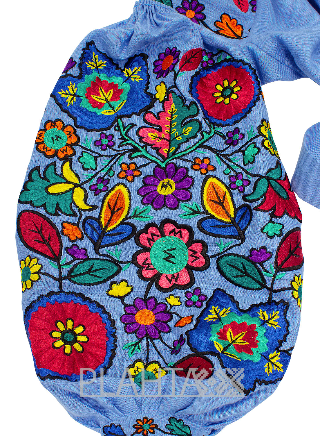 Блакитна блуза з вишивкою "Буковинські Квіточки" - Plahta - магазин-ательє сучасних вишиванок
