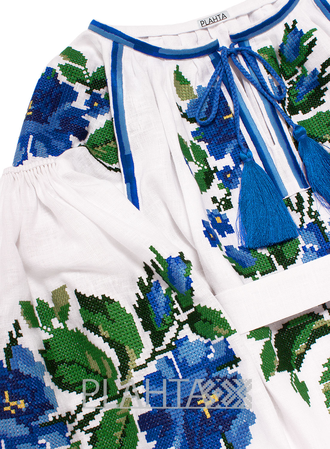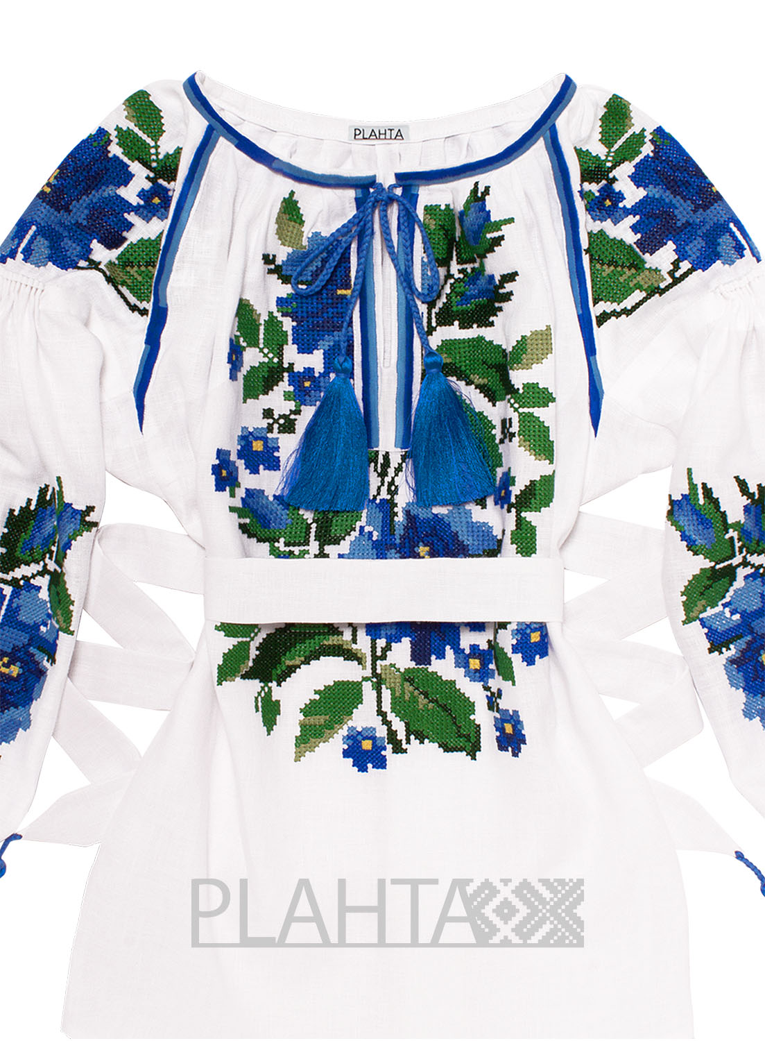 Довжина - 68 см. Пошиття - цілісний фасон з вирізом посередині. Рукава оформлені в традиційній техніці "пухлики". На рукавах - застібки-гудзики. Вишивка зроблена на промислових японських вишивальних машинах якісними нитками, що не втрачають колір. Виріб зшитий вручну нашими майстринями.