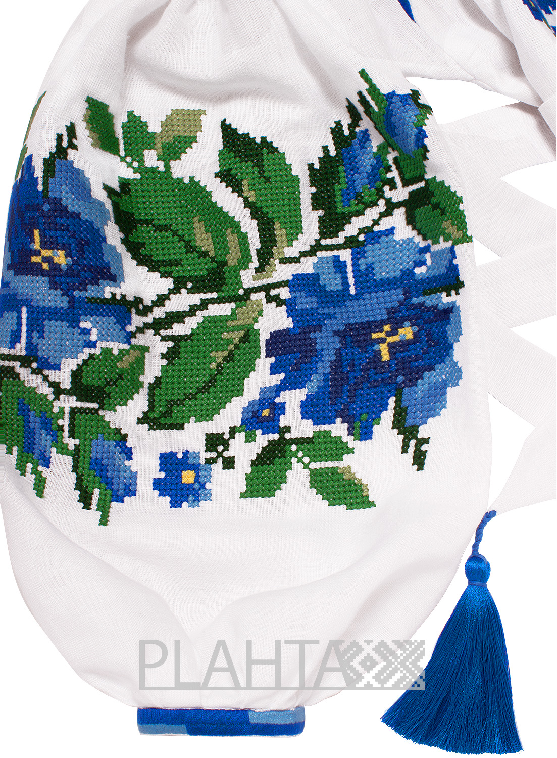 Кольори вишивки підібрані з певним значущим символізмом. Зелений – це задоволення, спокій, витримка, пробудження, колір життя, молодості, розвитку і сили. Синій колір є символом стихії води, жіночої енергії, сили. Саме зображення синьої троянди у вишивці - ознака достатку і процвітання.
