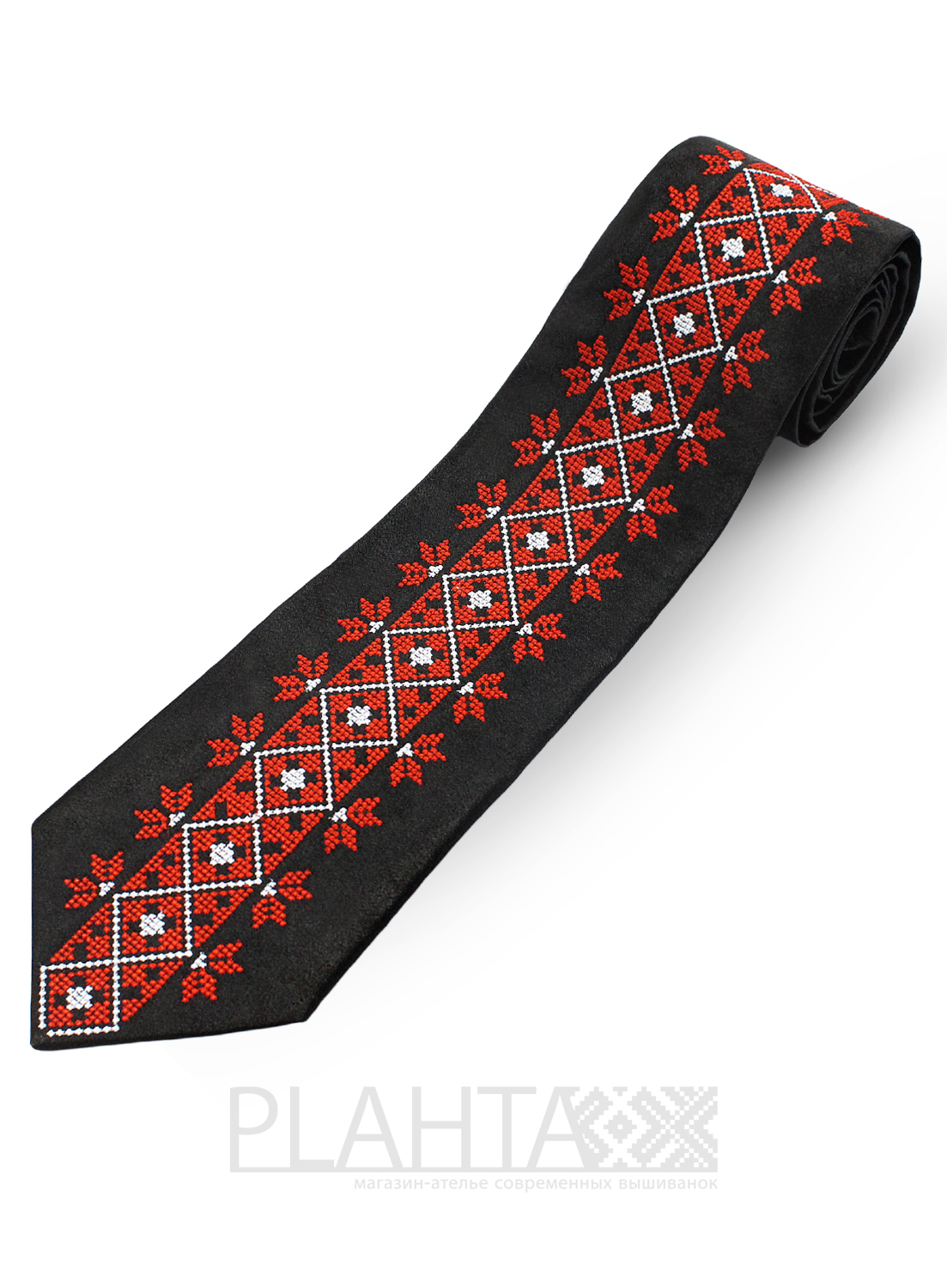 Чорна краватка з традиційним червоно-білим орнаментом безсумнівно не просто трендовий аксесуар, але і річ зі змістом. Вона прекрасно доповнить Ваш діловий костюм.