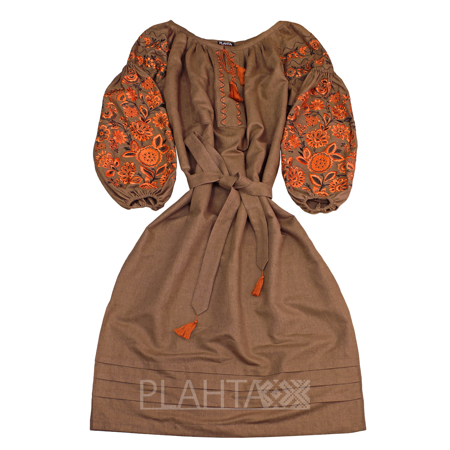 Яскрава сукня-вишиванка "Диво-Дерево" тепер і в коричневих тонах! Це справжня знахідка, якщо Ви шукаєте стильну і неповторну річ. Ця сукня-вишиванка поєднує в собі простий крій, гармонійний детальний колорит, масивну вишивку автентичного мотиву і архаїчний символізм. Сукня "Диво-Дерево" безумовно додасть нотку українського шарму в сучасний жіночий образ.