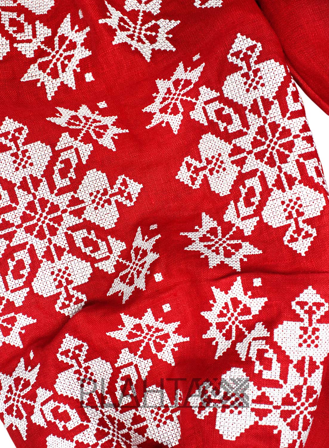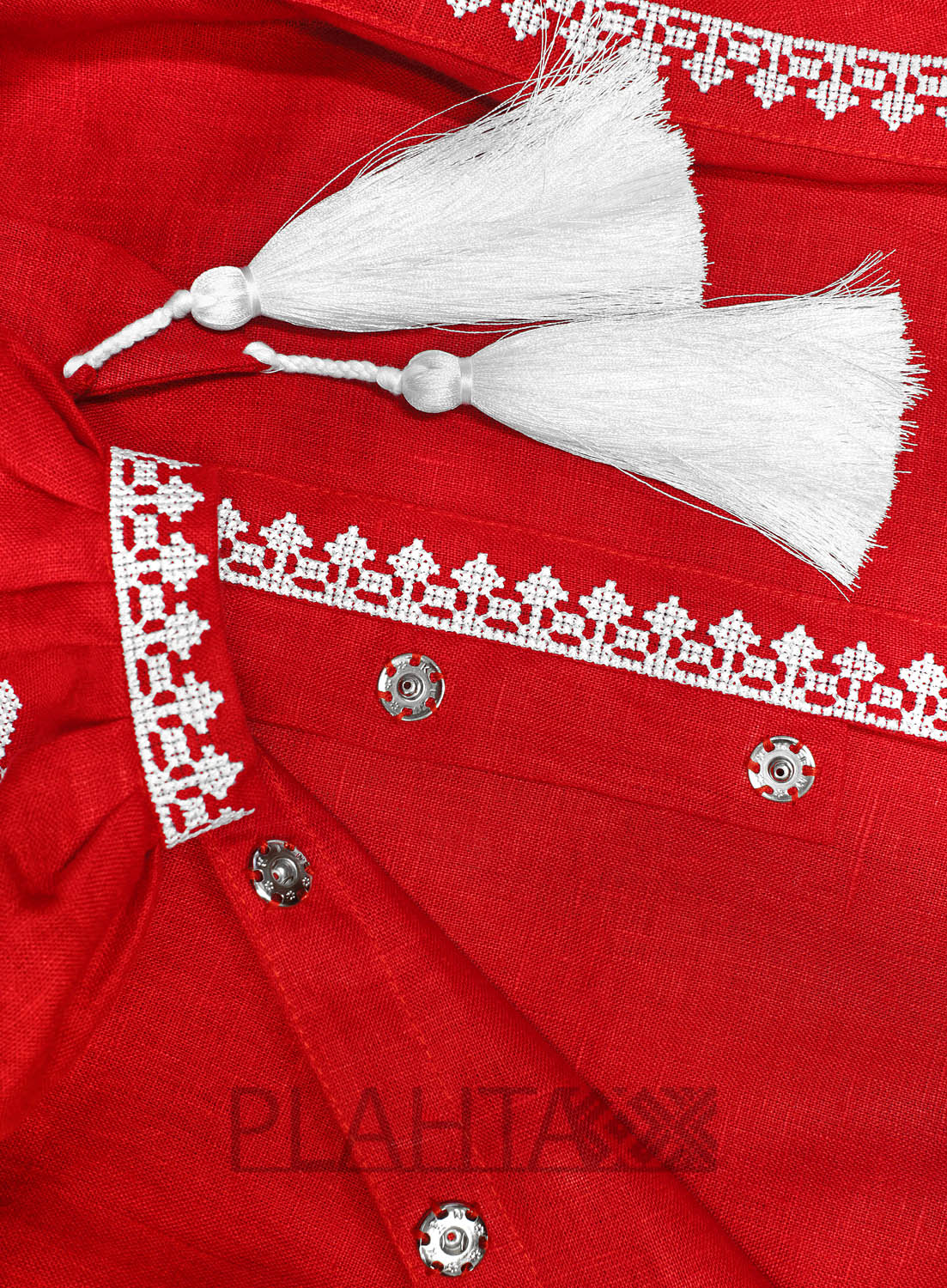 Червоний колір виробу символізує любов, пристрасть, нестримну енергію. А білий, використаний у вишивці, - це колір чистоти й непорочності. Домінуючий мотив, використаний в  вишитому орнаменті - зірки. Зірки на рукавах уособлюють архаїчне уявлення народу про структуру Всесвіту, його впорядкованості та гармонії. Також, зірки - це знак небесного вогню,  знак розуму. Поряд із зірками простежуються восьмикутні сонячні розетки.