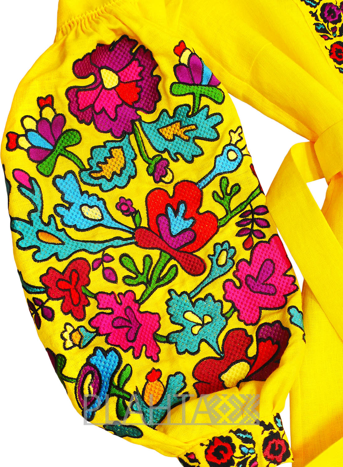 Багата колірна гамма вишивки є традиційною і найбільш часто використовувалася на вишиванках для юних дівчат. Квіткова вишивка на рукавах розроблена на основі автентичних мотивів. В українській культурі квіти символізують красу, молодість, а також процвітання роду.