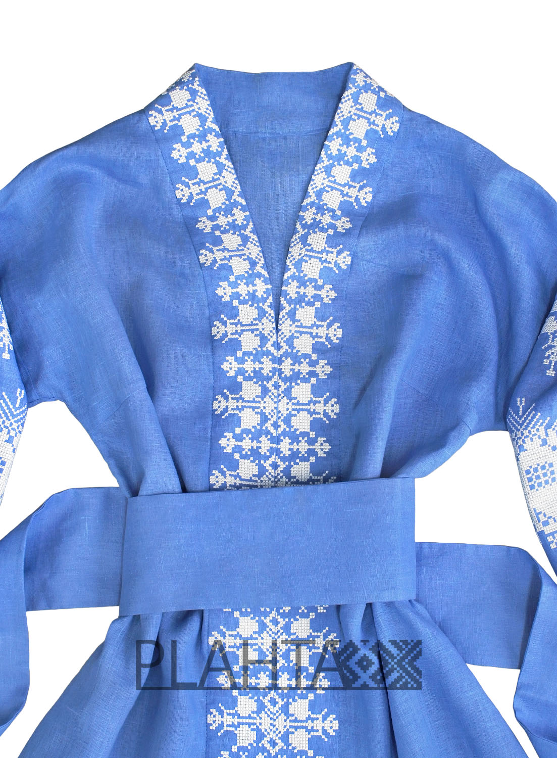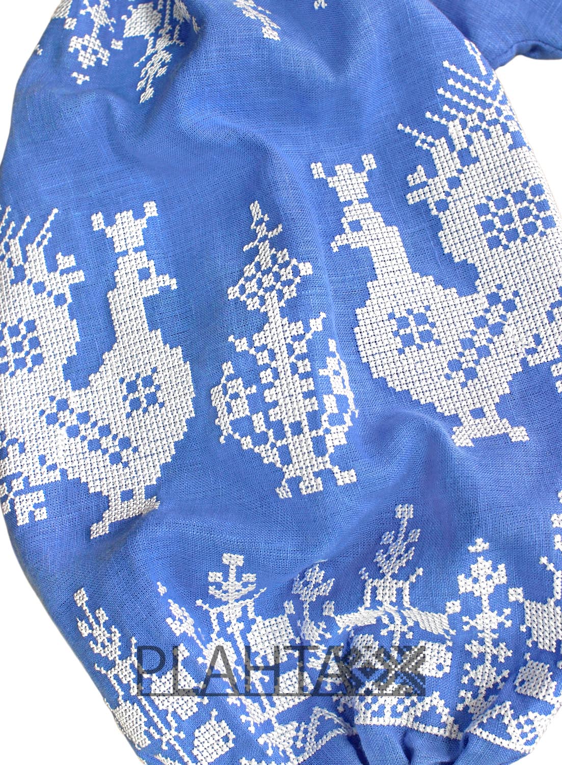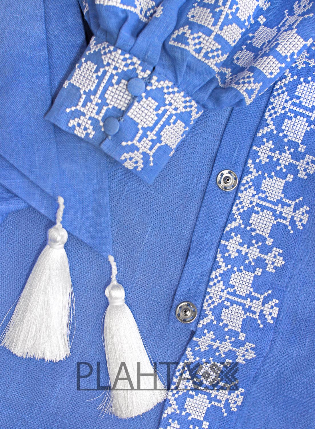 Довжина - 150 см. На планці - застібки-кнопки. Рукава виконані в традиційній українській техніці "пухлики". На рукавах - застібки-гудзики. Вишивка хрестиком зроблена на промислових японських вишивальних машинах якісними нитками, що не линяють. Виріб зшитий вручну нашими майстринями.