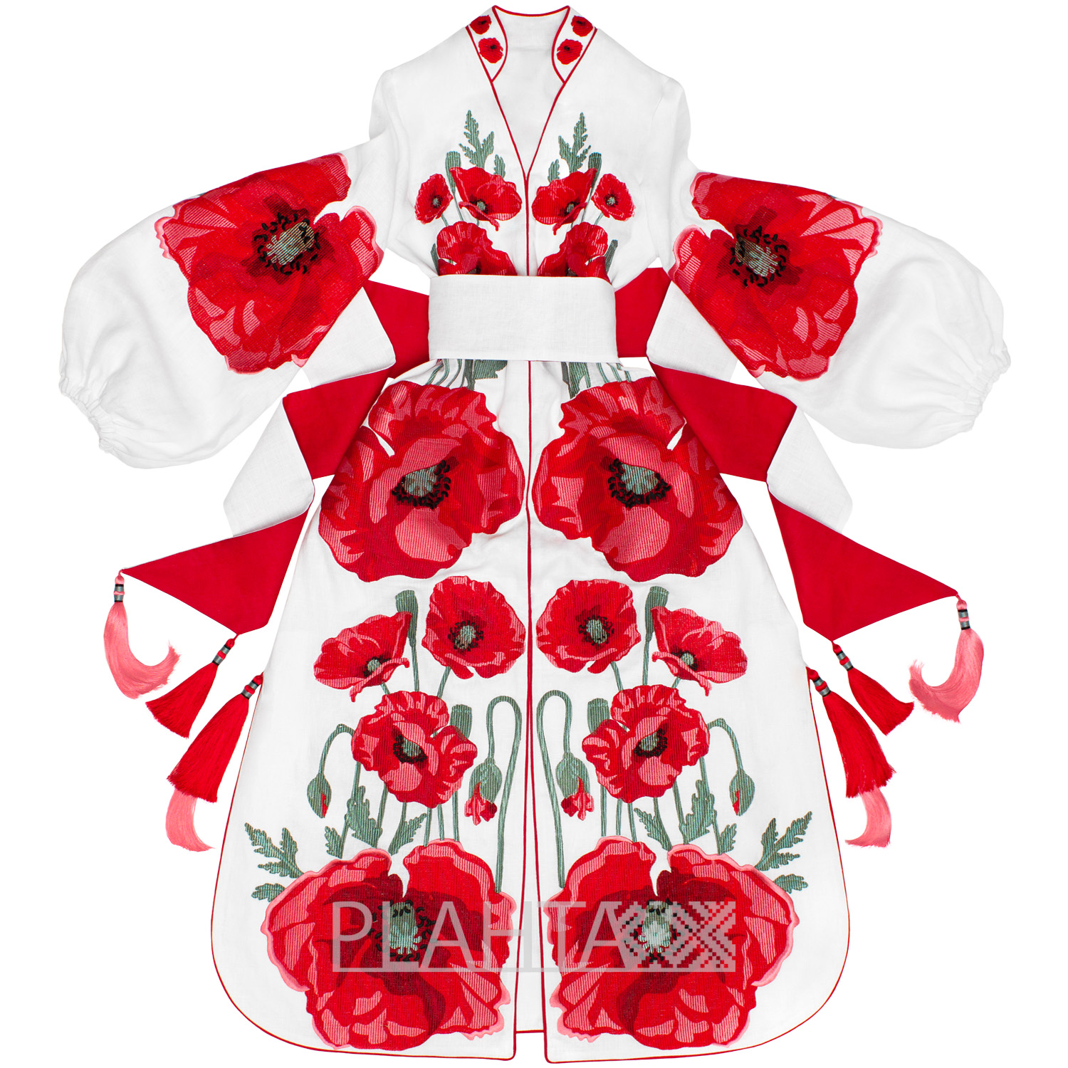 Довжина - 130 см. На планці - застібки-кнопки. З боків сукні розрізи. Горловина V-образна. Манжети на резинці. Вишивка зроблена на промислових японських вишивальних машинах якісними нитками, що не линяють. Виріб зшитий вручну нашими майстринями.
