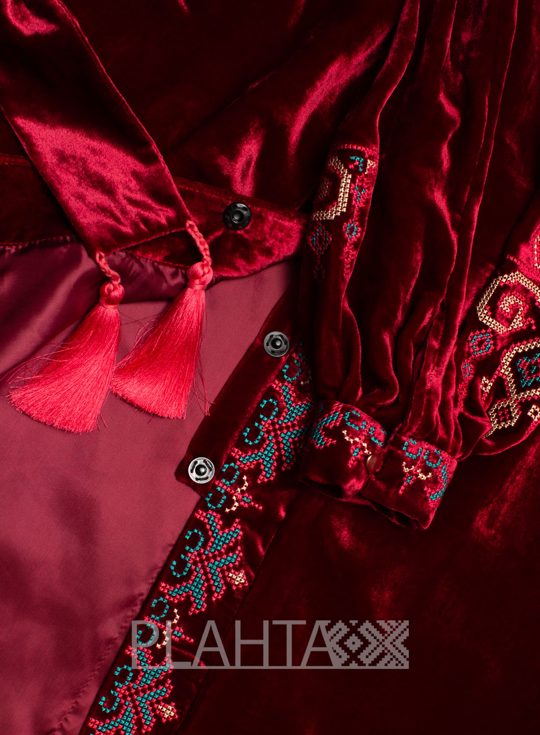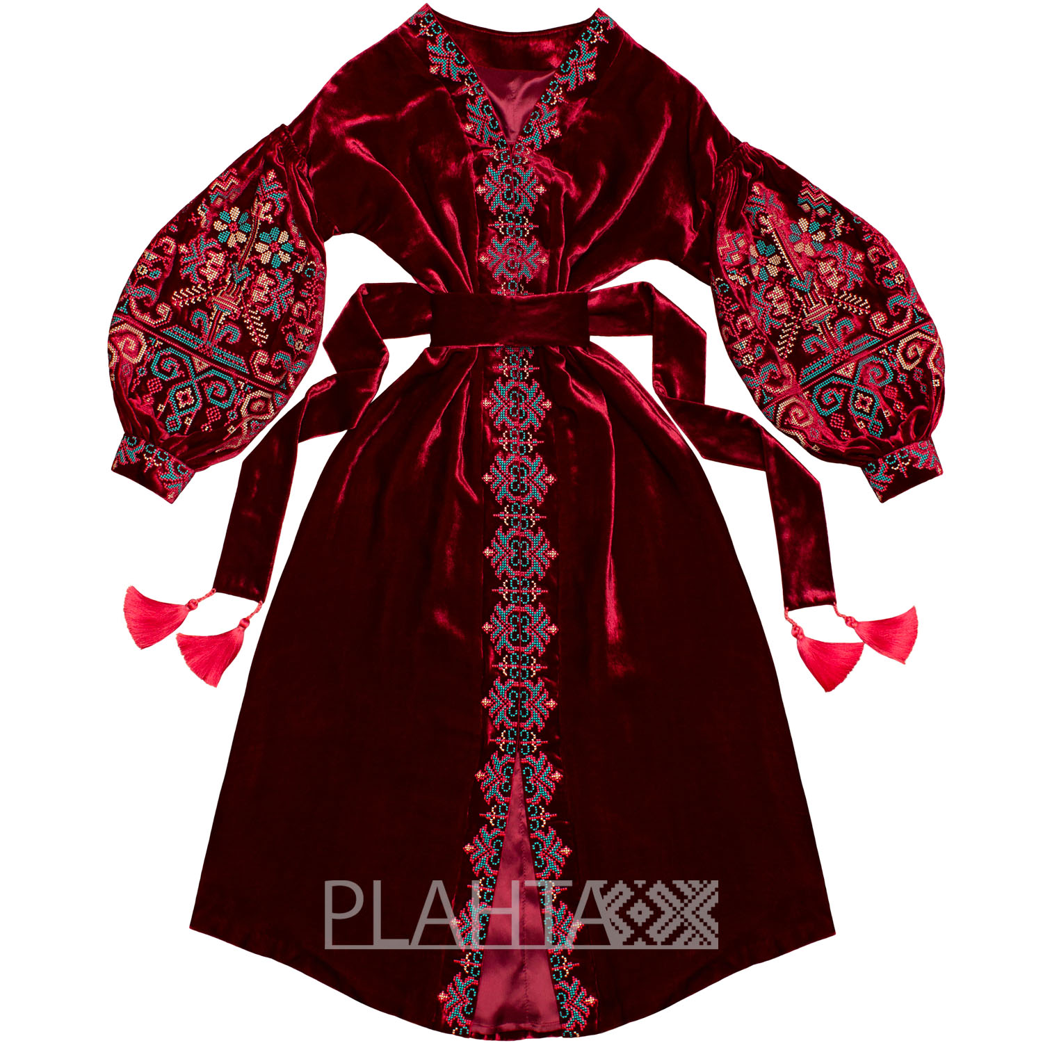 Вишукана сукня "Таємний Сад" стане справжньою перлиною Вашого образу. Поєднання розкішного шовкового оксамиту й української вишивки зробить Ваш стиль неповторним.