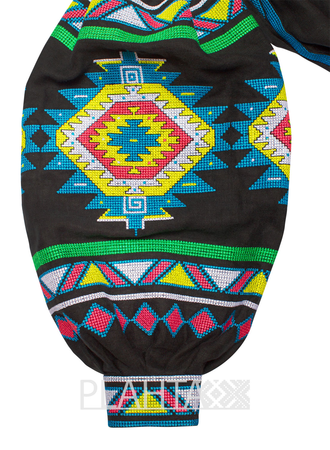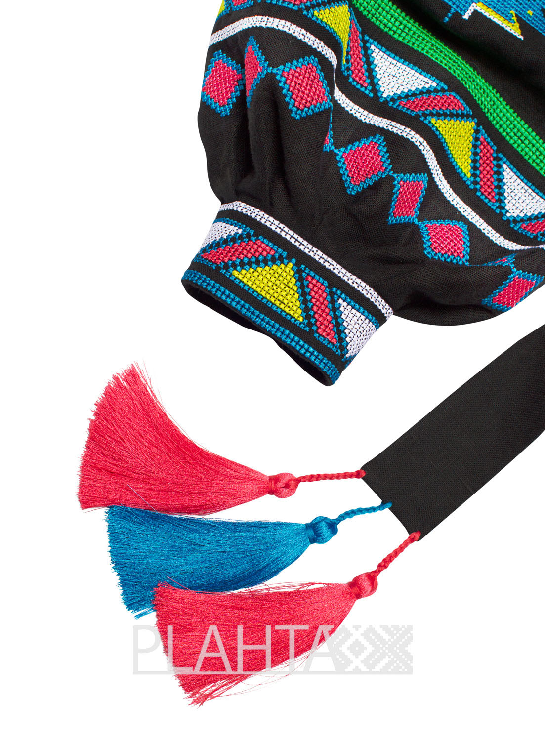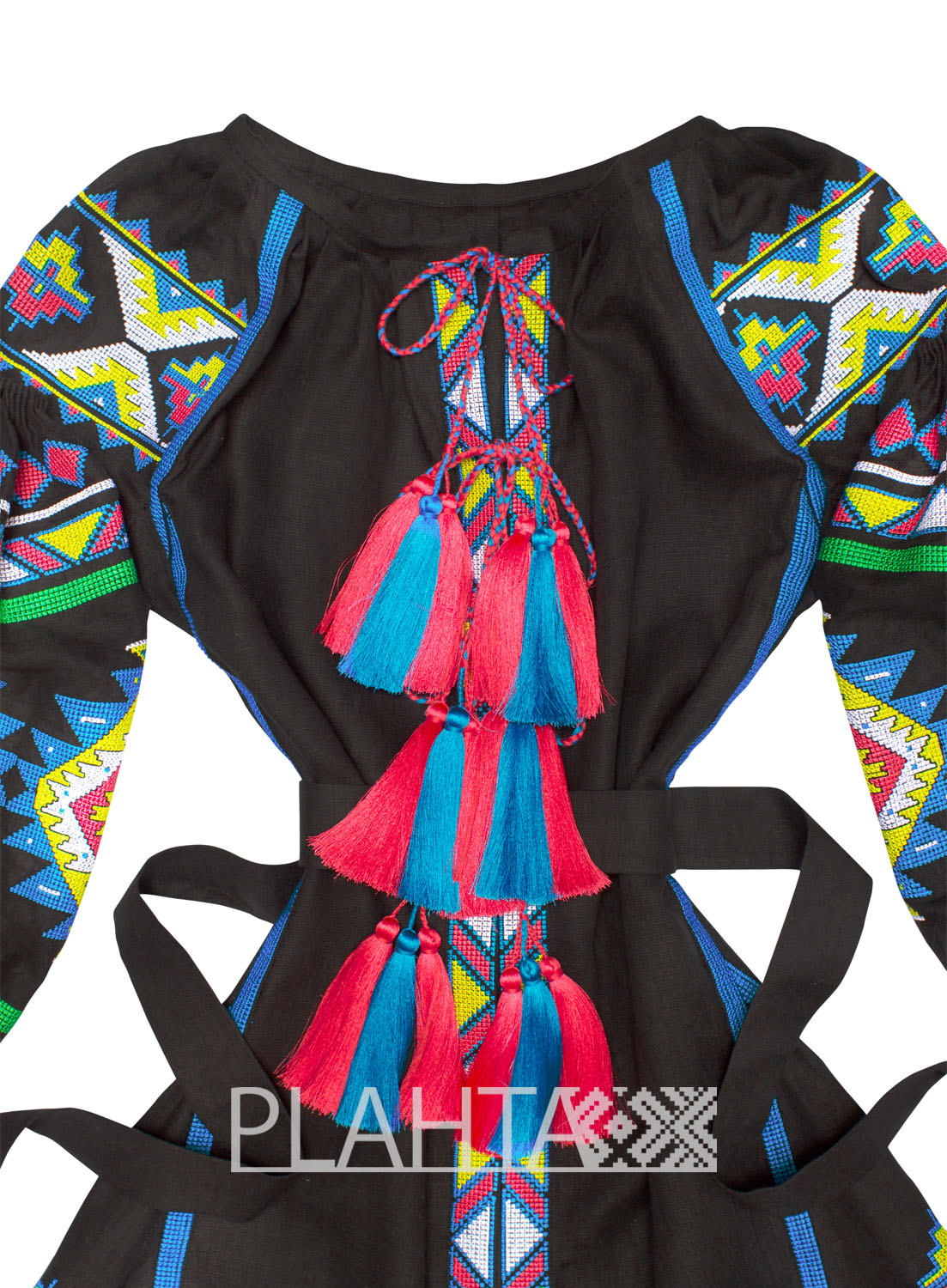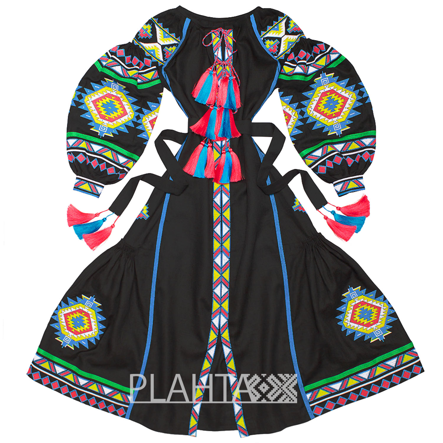 Довжина - 130 см. На планці - застібки-кнопки. З боків сукні клини, прикрашені вишивкою. Горловина і рукава виконані в традиційних українських техніках - "збиранка" та "пухлики". На рукавах - застібки-гудзики. Вишивка хрестиком зроблена на промислових японських вишивальних машинах якісними нитками, що не линяють. Виріб зшитий вручну нашими майстринями.