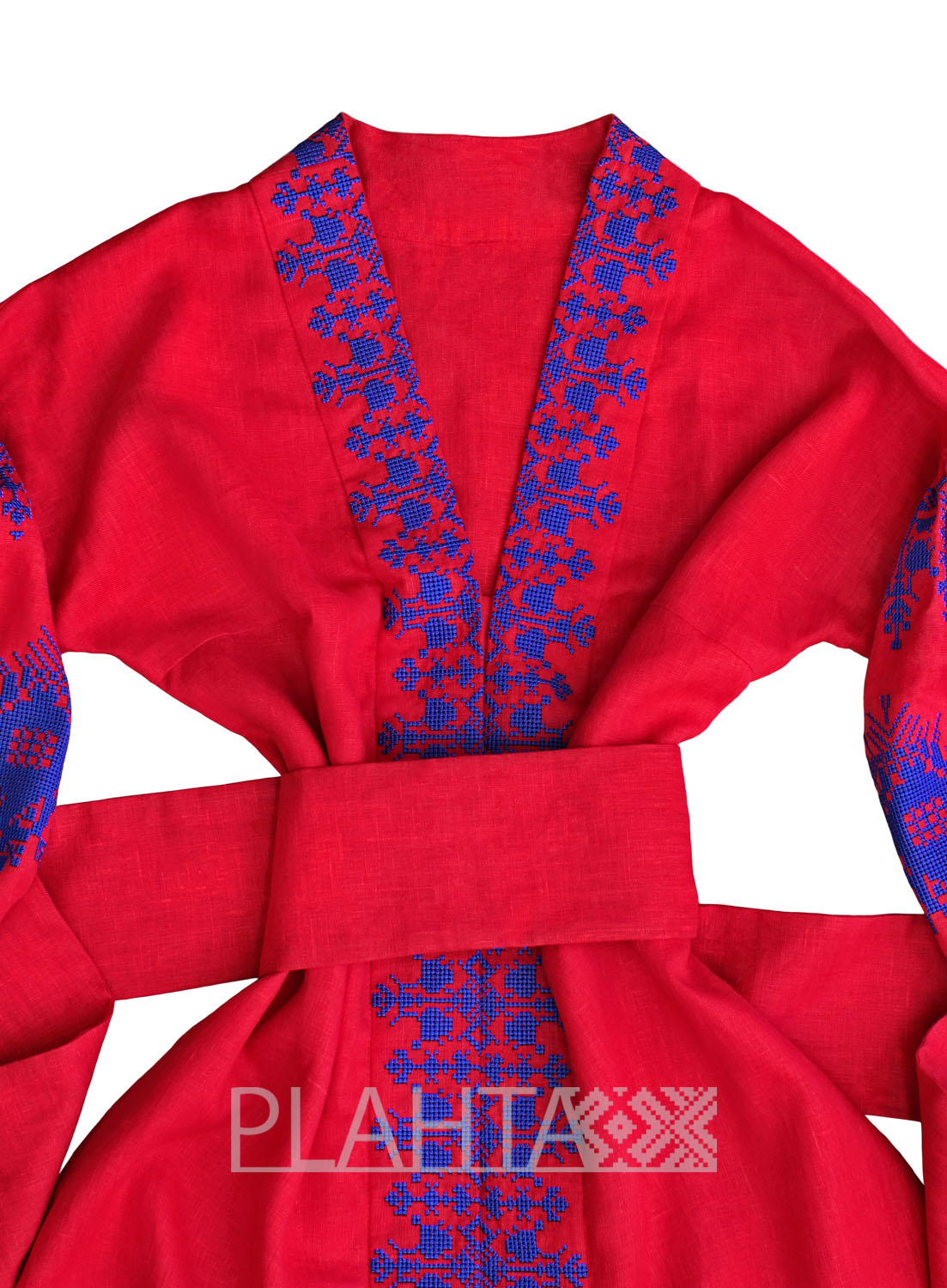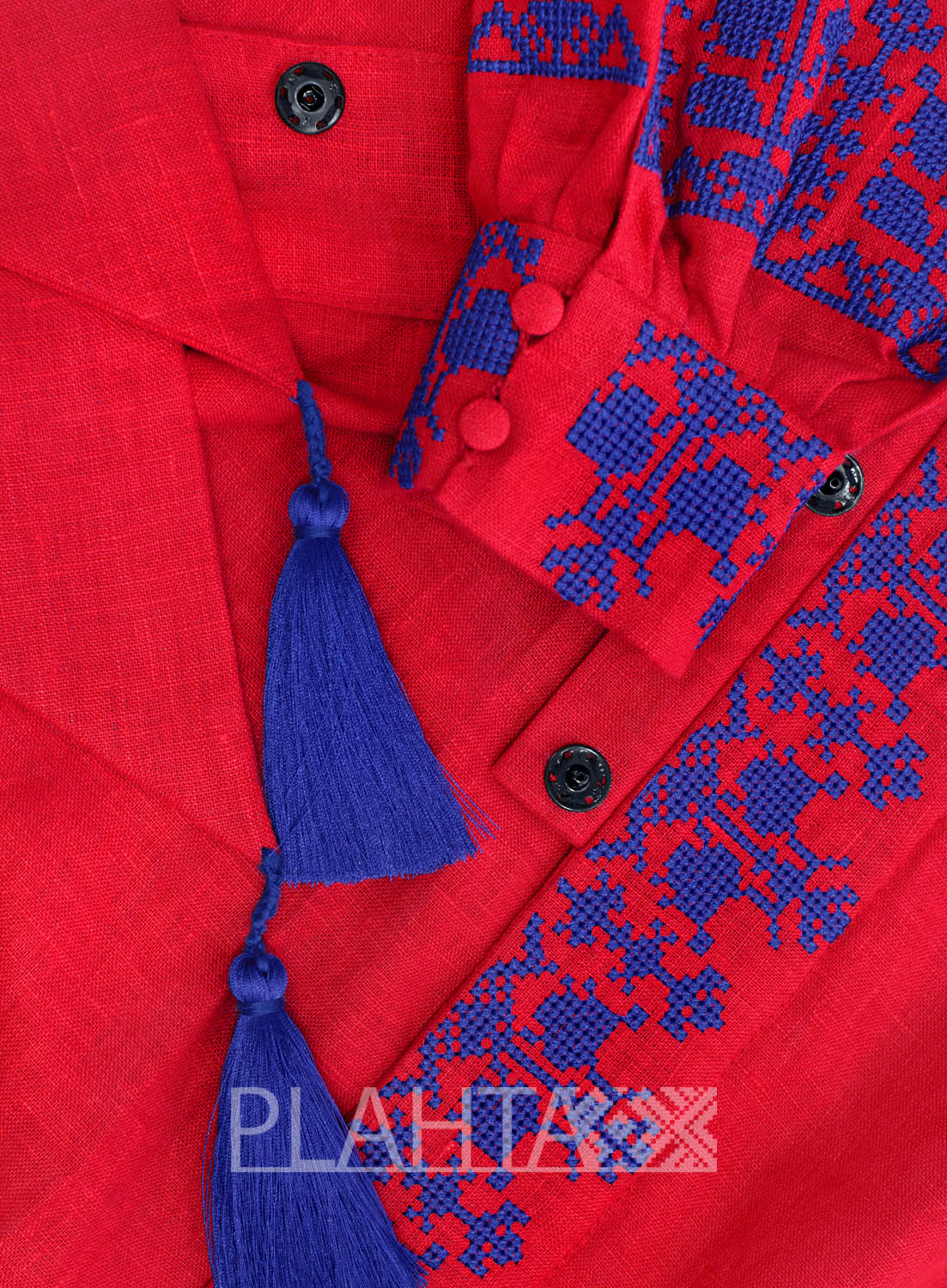 Довжина - 150 см. На планці - застібки-кнопки. Рукава виконані в традиційній українській техніці "пухлики". На рукавах - застібки-гудзики. Вишивка хрестиком зроблена на промислових японських вишивальних машинах якісними нитками, що не линяють. Виріб зшитий вручну нашими майстринями.