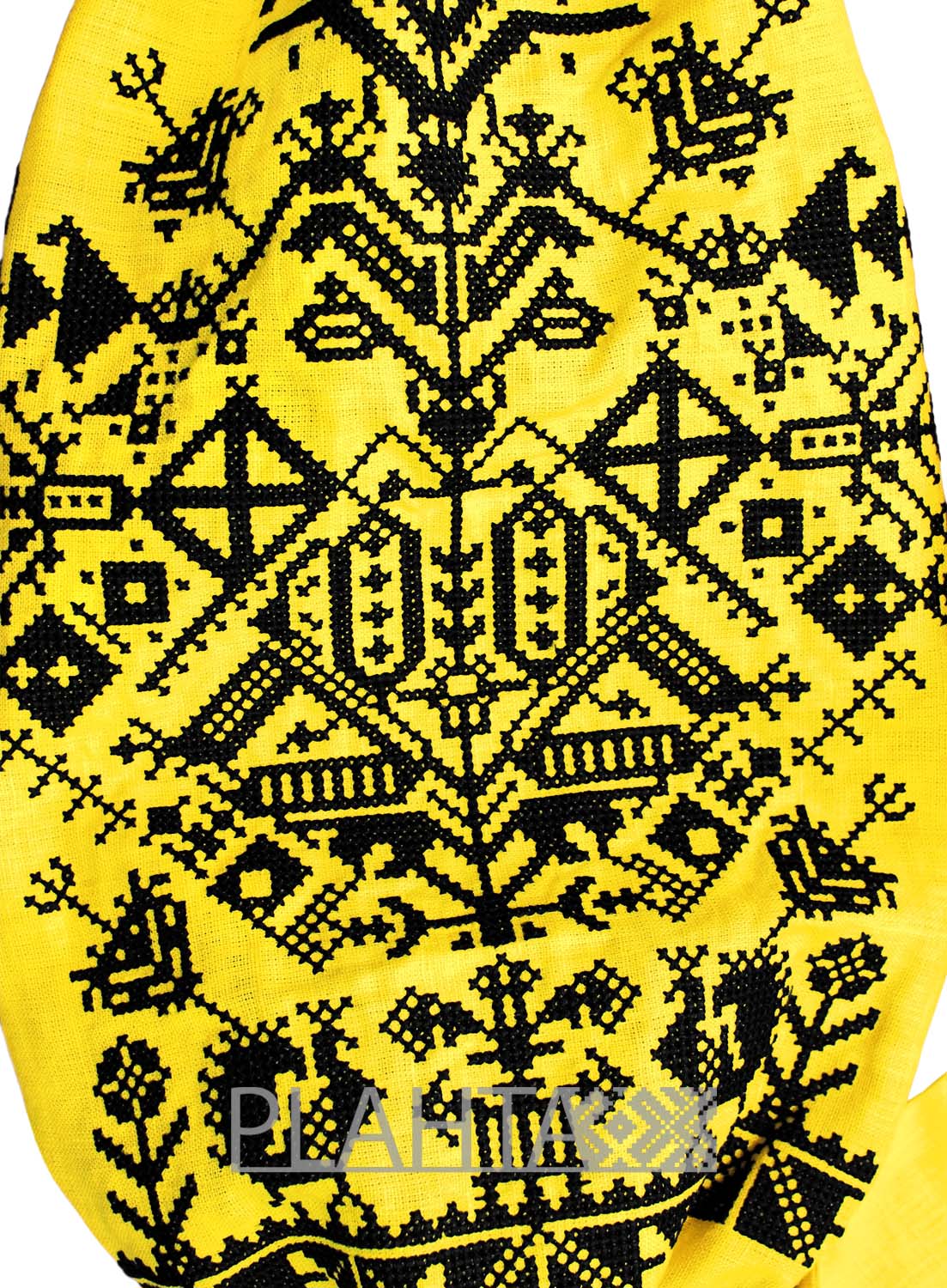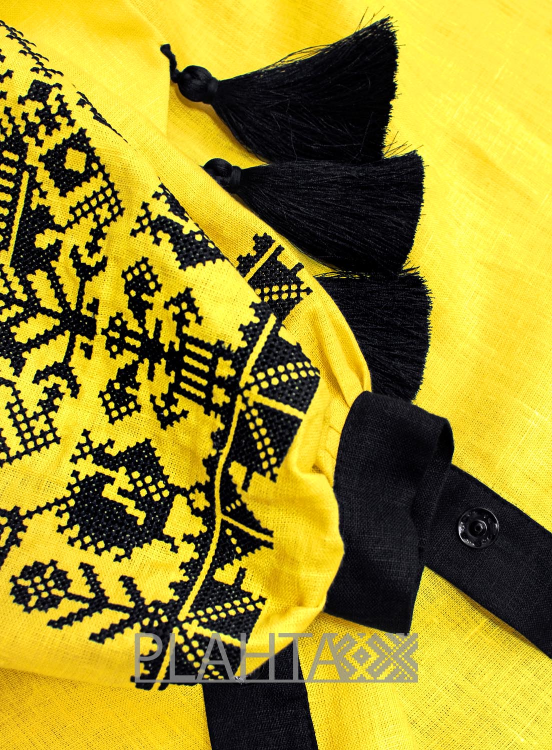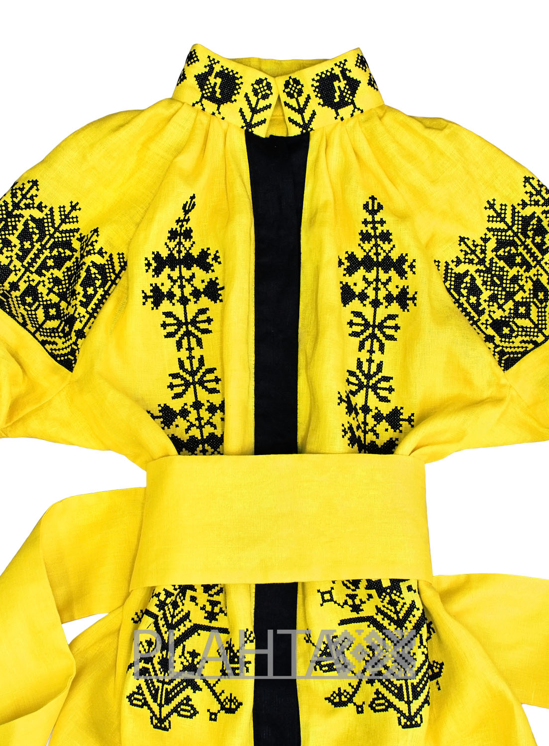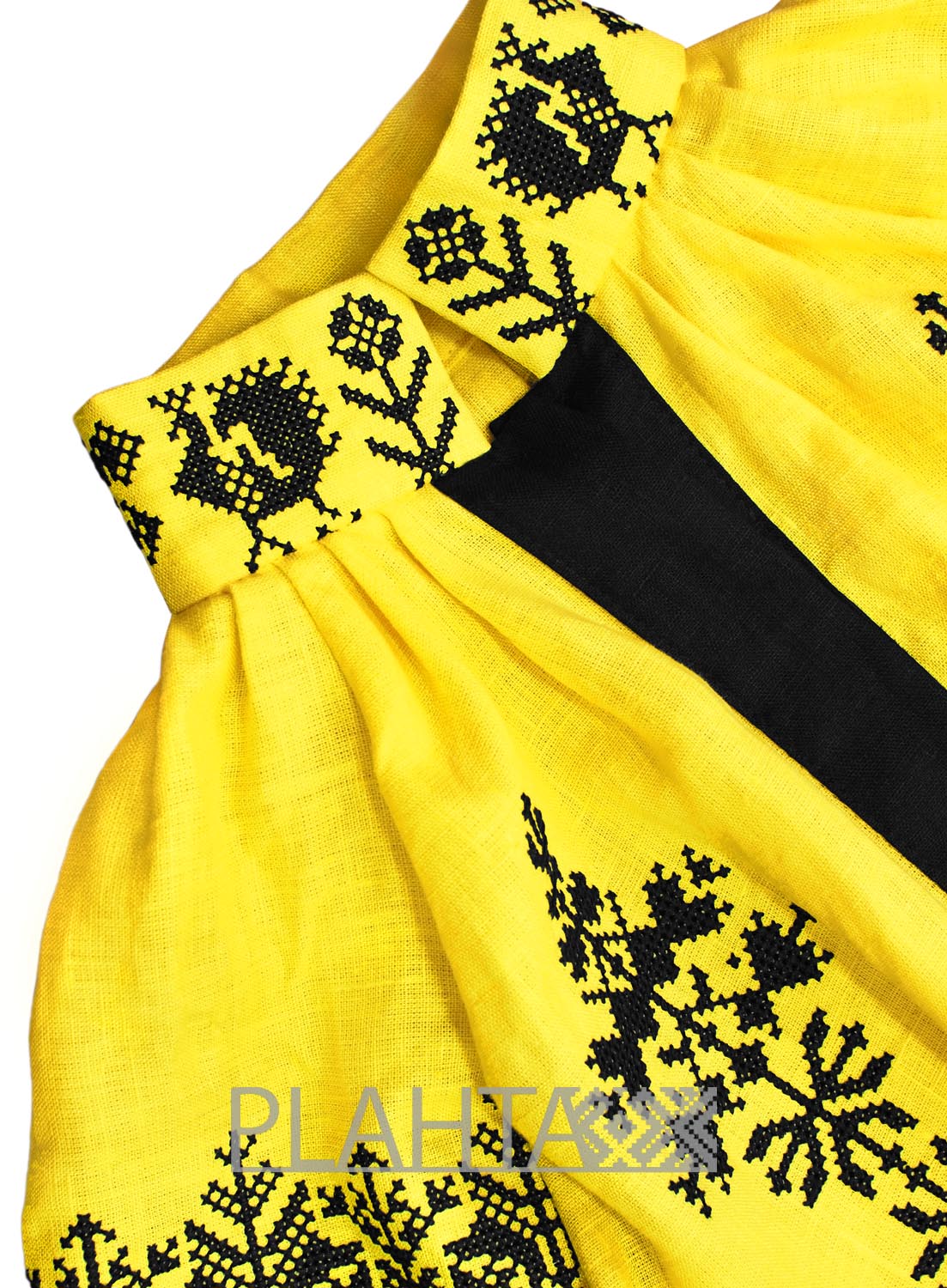 Колорит сукні й мотив вишивки наділені особливим символізмом. Жовтий колір - колір меду та пшениці, достатку й багатства. А глибокий чорний здавна символізує родючість. У вишитому мотиві простежуються казкові птахи-павичі. Павич - це жар-птиця, яка несе в собі сонячну енергію розвитку. Також павич це символ молодості та сімейного щастя.