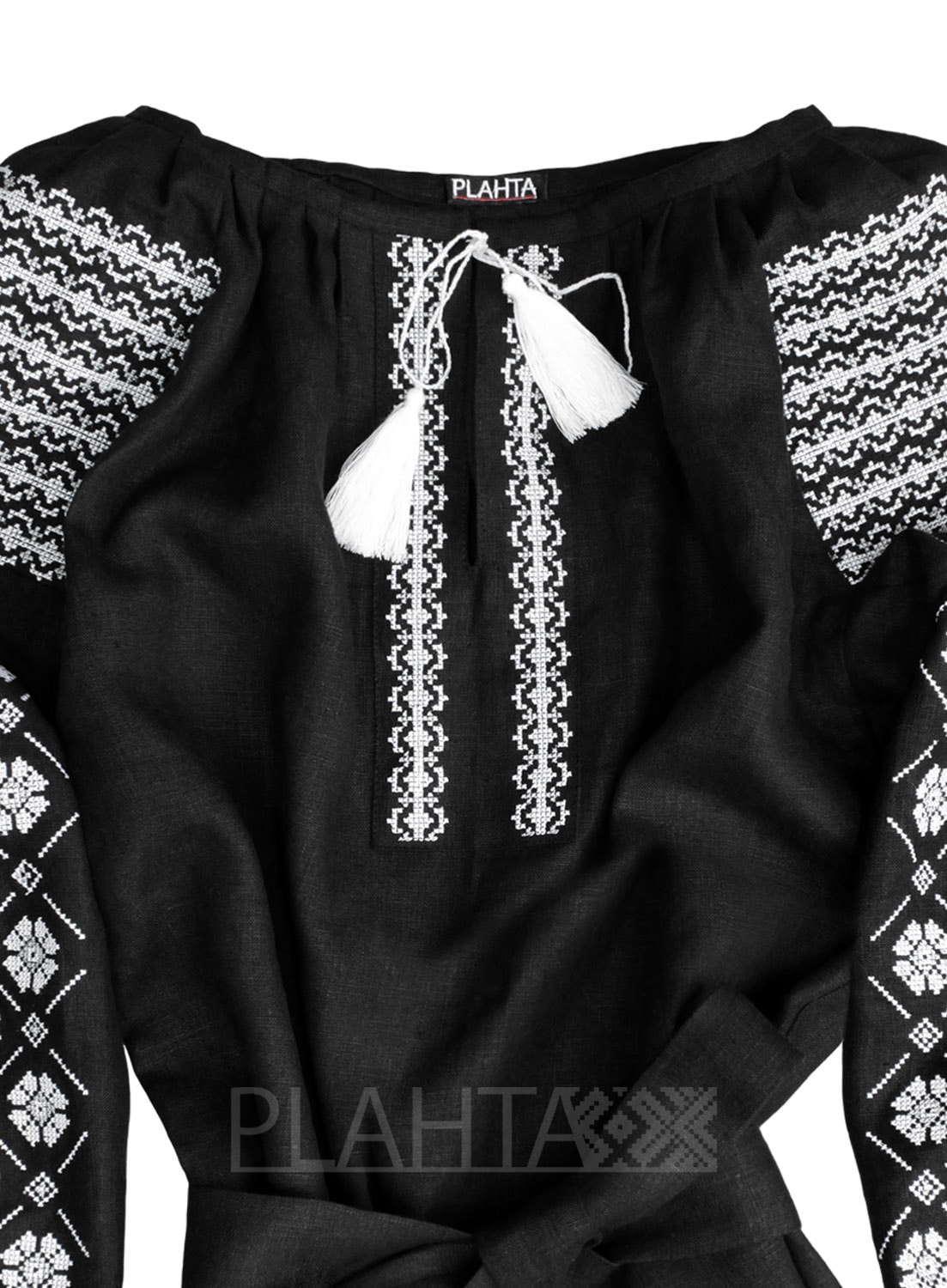 Чорний і білий - обидва ці кольори несуть глибинний сенс. Білий є кольором сили, життя, енергії, цей колір активно захищає. Чорний же - це колір землі, торжества, багатства, мудрості. Він вбирає в себе інформацію і енергію. Не позбавлена таємного значення і символіка вишитих орнаментів. Явно читаються ромбічні мотиви. Ромб є символом родючості і жіночності. Домінуючий мотив - квіти, зібрані в геометричний орнамент, що символізує уявлення народу про Всесвіт, його нескінченності і устрою. Використані в орнаменті квіти нагадують барвінок - символ розвитку, молодості, нев'янучого життя, який програмує на звершення і досягнення цілей.
