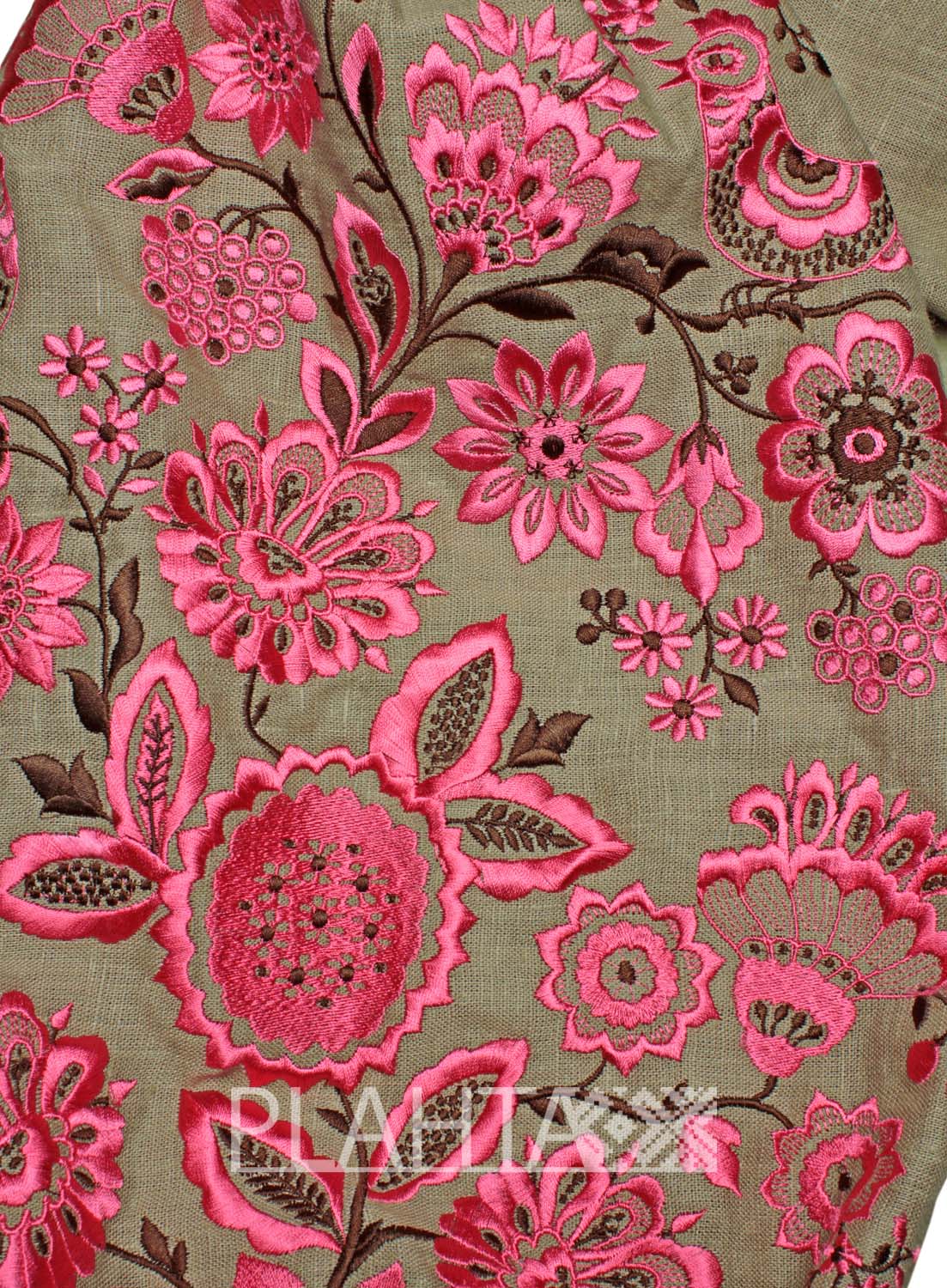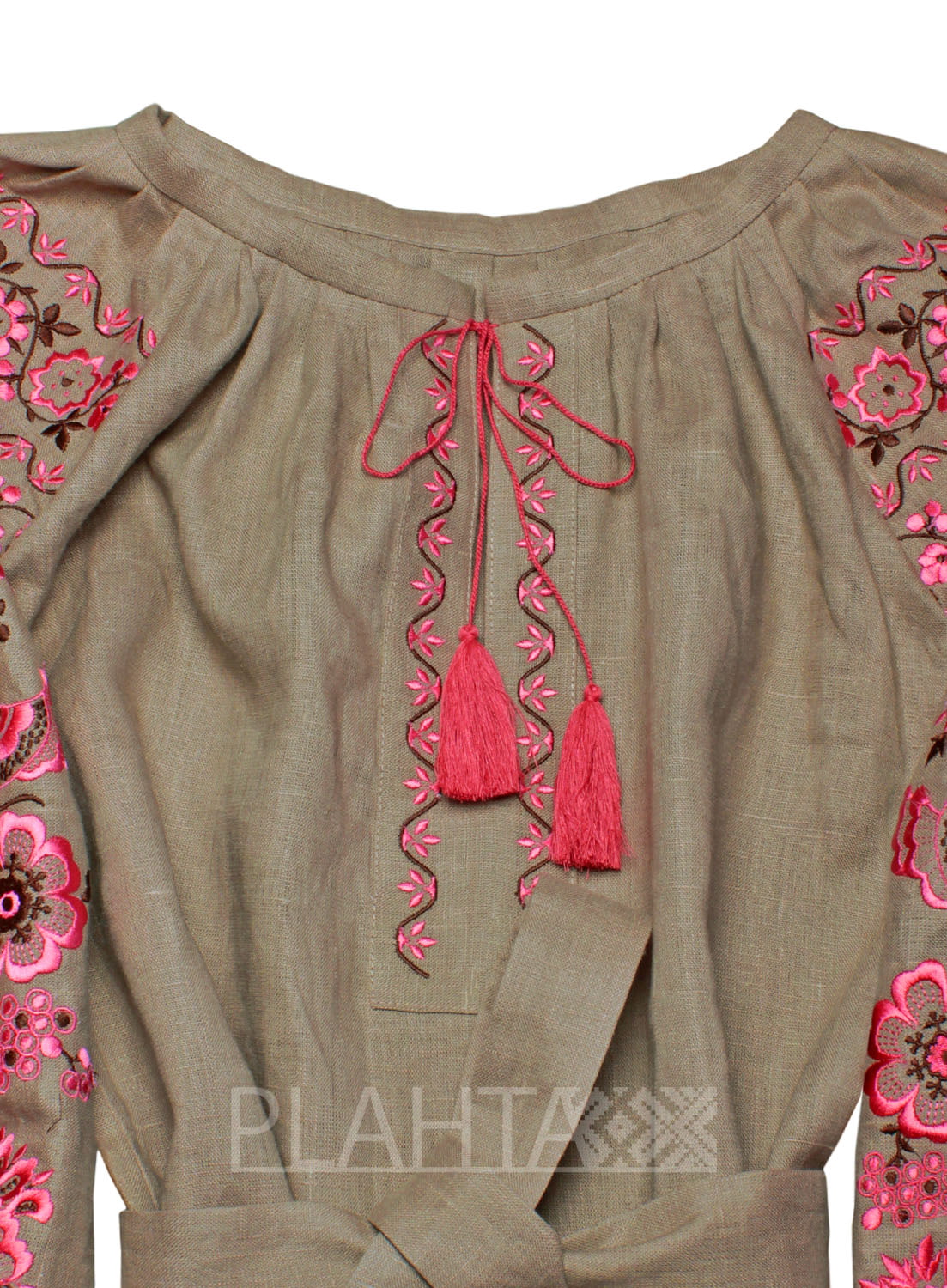 Якщо Ви шукаєте трендову і яскраву річ, яка підкреслить жіночність і відмінний смак, то сукня-вишиванка "Диво-Дерево" безумовно відповідає цим критеріям. Простий крій, приємний для ока кавовий відтінок льону, масивна вишивка рожевого кольору в автентичному стилі - все це являє собою перероблений на сучасний манер елемент українського традиційного гардероба, який відповідає передовим модним тенденціям в усьому світі.