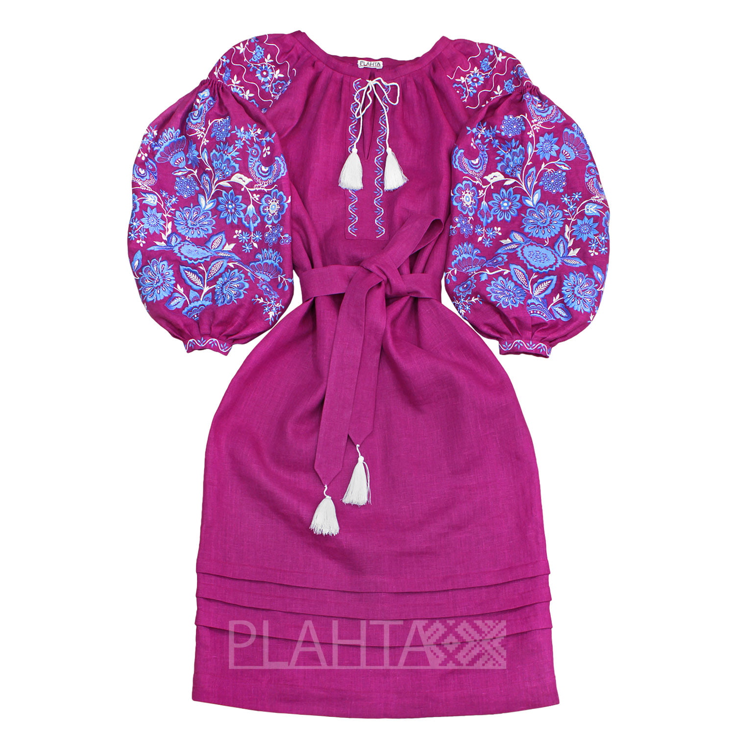 Помітне і ошатне "Диво-Дерево" в кольорі фуксії - плаття-вишиванка в новій, нестандартній, сучасній подачі. У такій сукні складно залишитися непоміченою, адже вона створена, щоб привертати увагу і зачаровувати. Завдяки поєднанню контрастних кольорів і яскравої автентичної вишивки в українському стилі, "Диво-Дерево" відповідає всім критеріям сучасних модних тенденцій і сміливо може стати "родзинкою" будь-якого жіночого образу - ділового, вечірнього або молодіжного.