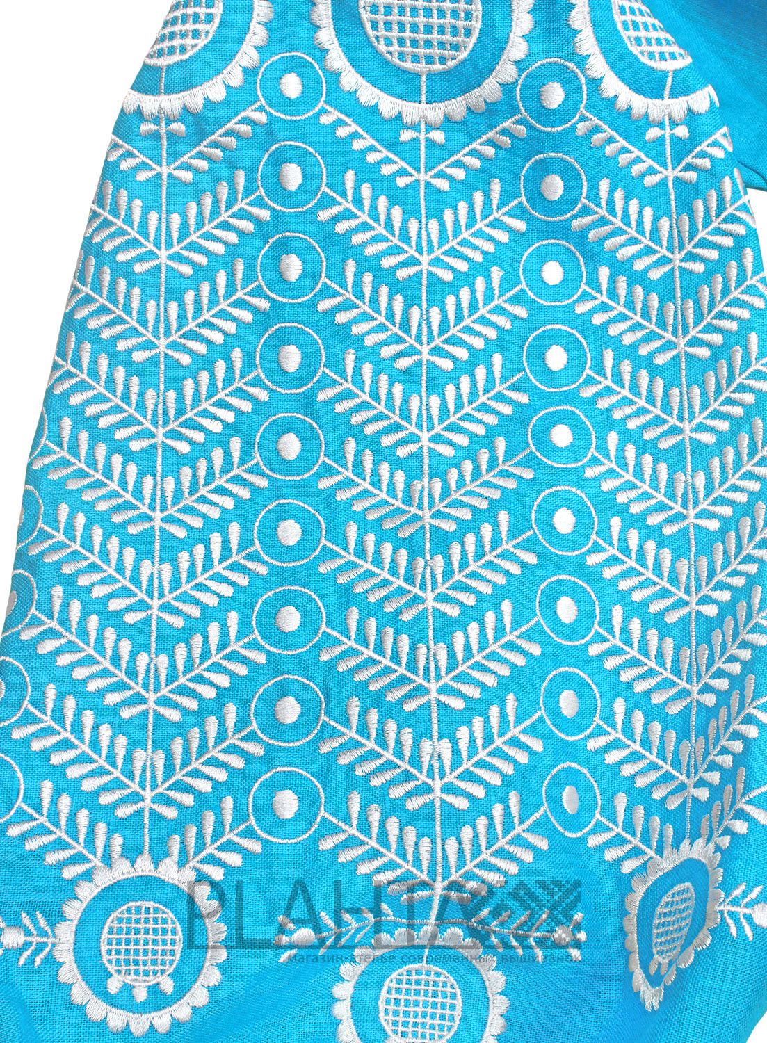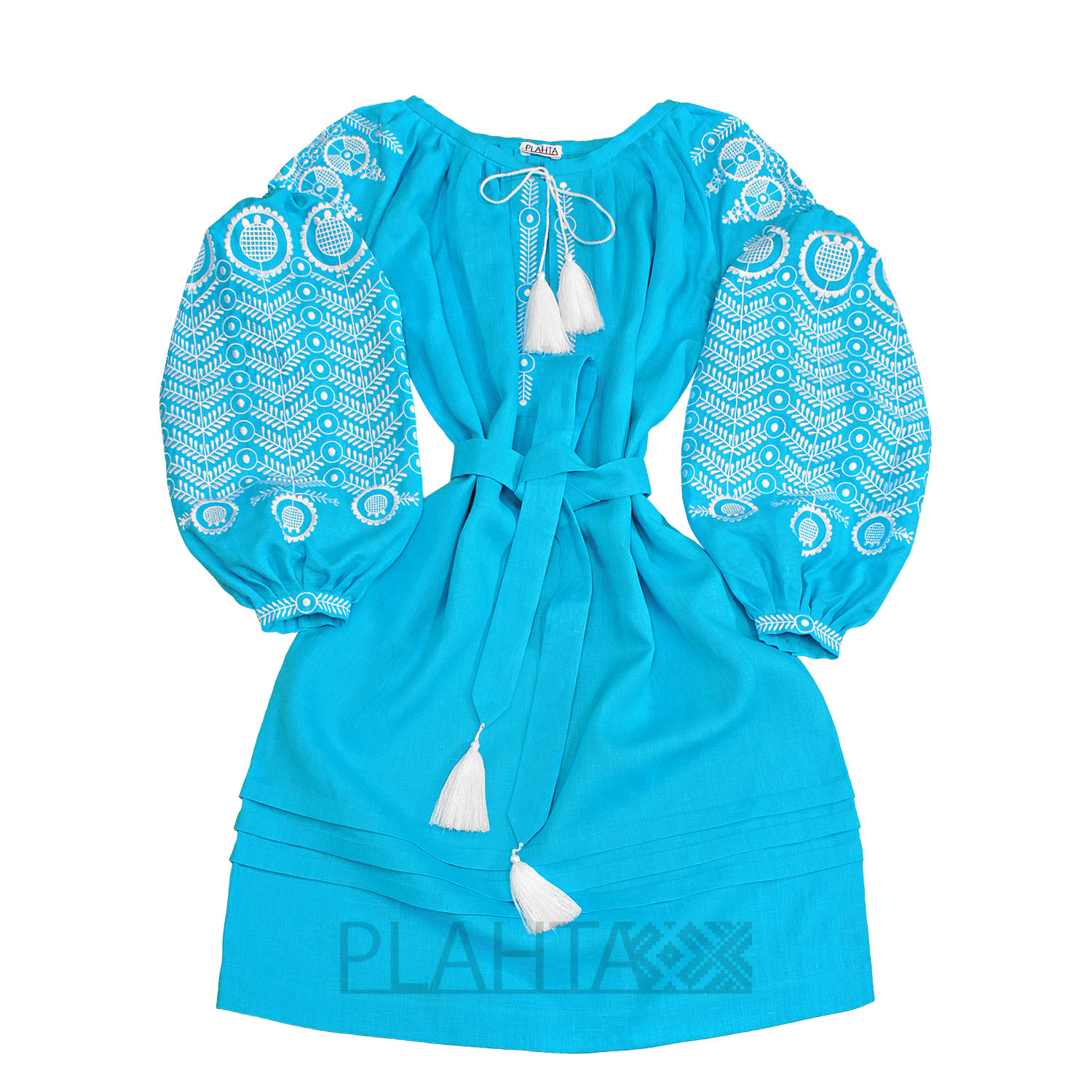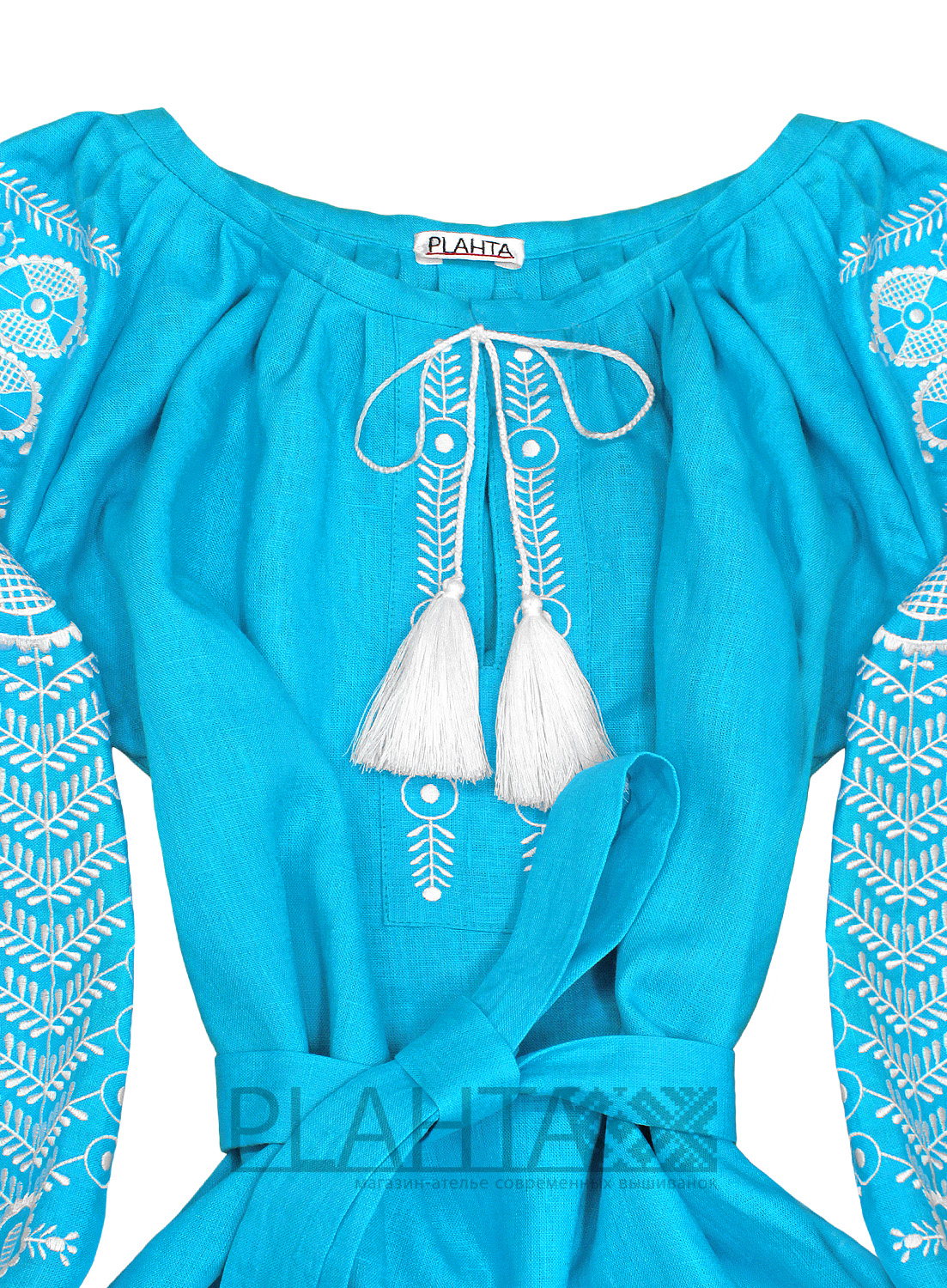 "Лазуровий Вир" - чарівна сукня, колір і вишивка якого заворожують, а натуральна м'яка тканина привносить відчуття легкості. Прекрасно підійде як для вечірнього образу, так і для повсякденного.