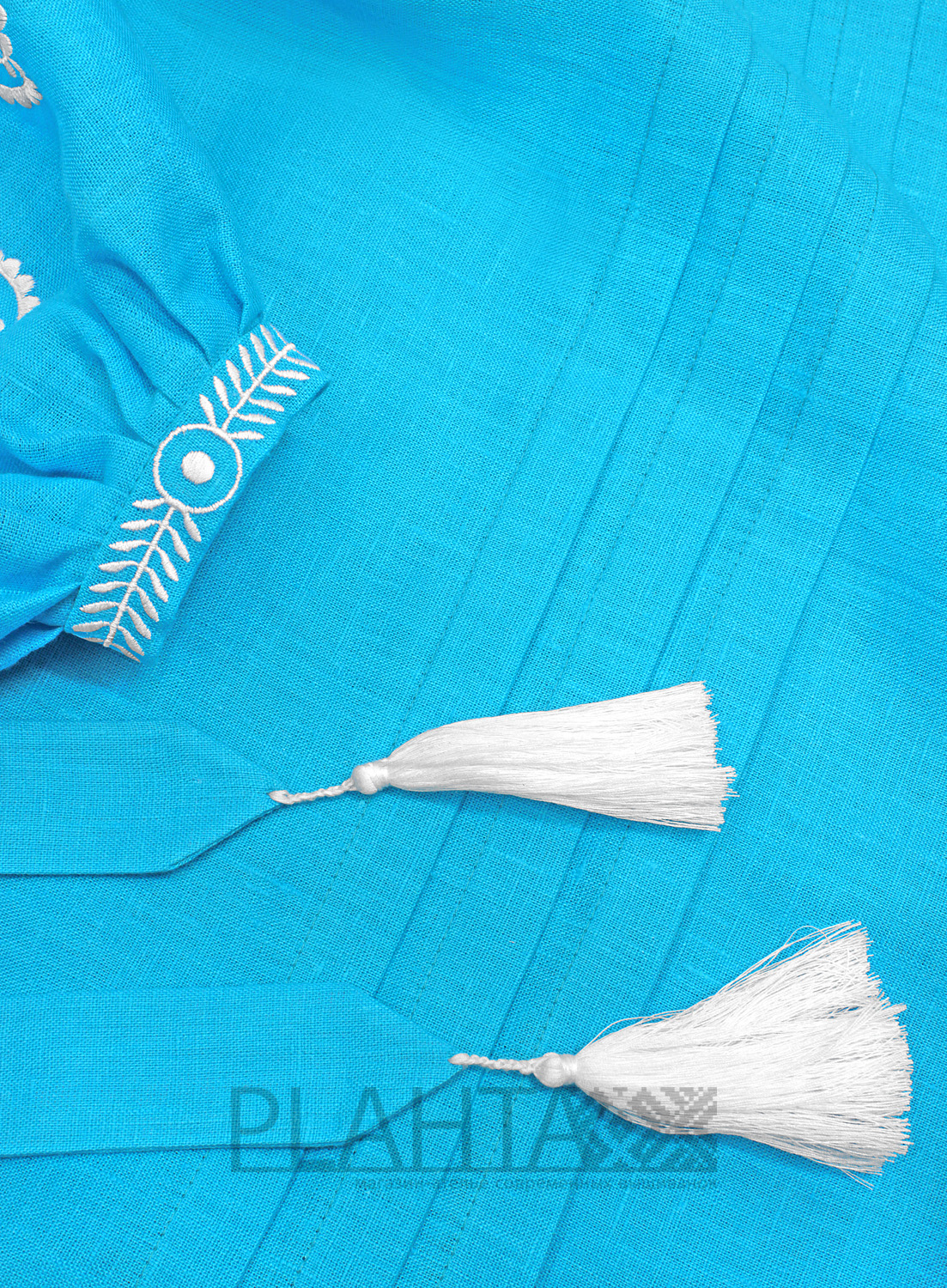 Лазуровий колір (як один з відтінків блакитного кольору) символізує воду та небо, а відповідно чистоту фізичну й духовну, а також є сильними оберегом. Він доповнений білою вишивкою. З давніх-давен таку вишивку носили молоді дівчата. Білий символізував чистоту та невинність, також це колір енергії.