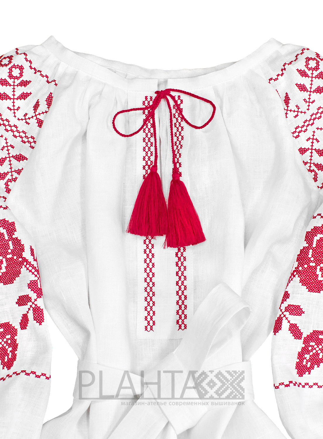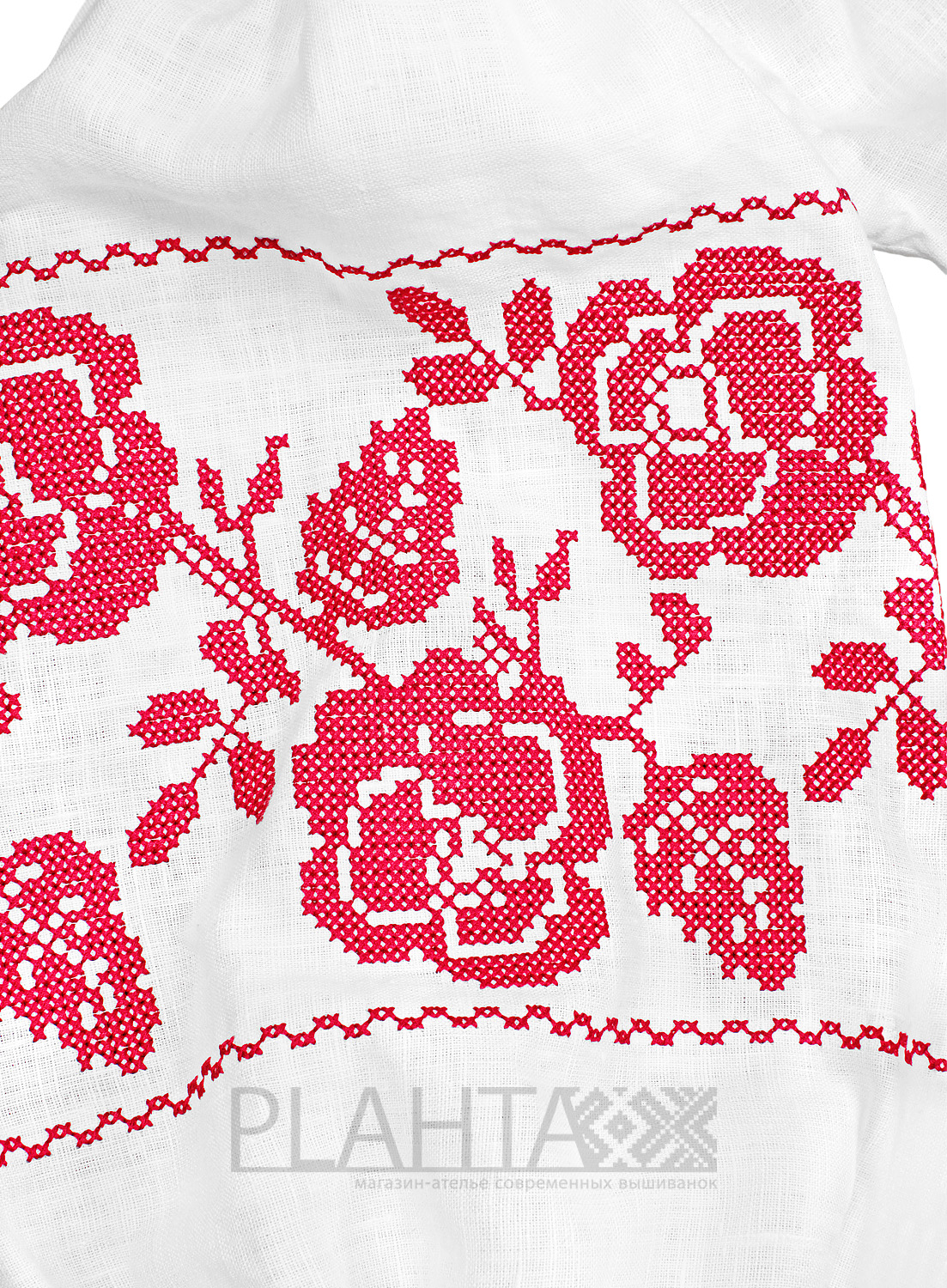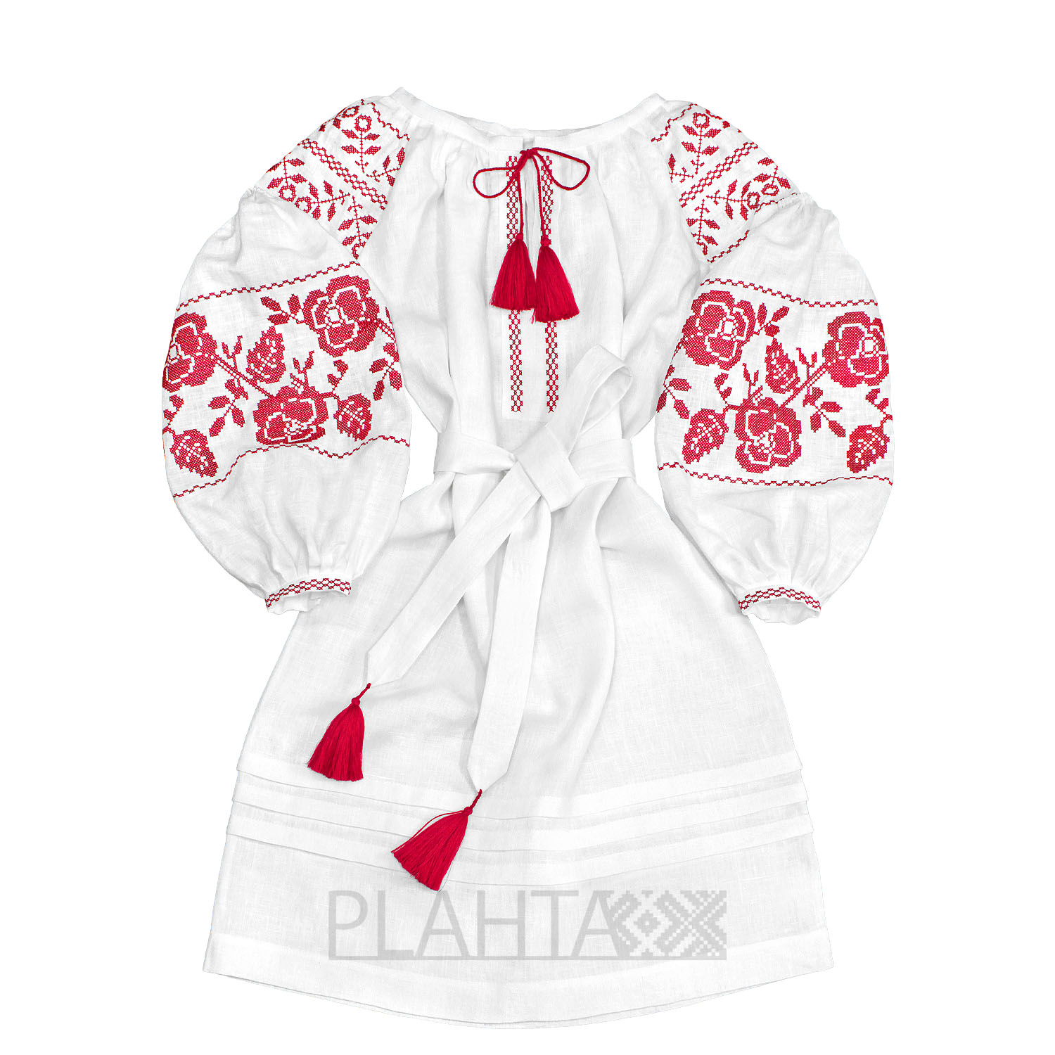 Сукня-вишиванка з яскравими малиновими трояндами,що вишиті хрестиком - стильний елемент гардеробу впевненої жінки. Універсальний і зручний фасон підійде для ділового, вечірнього або повсякденного стилю. Автентична українська вишивка в сучасному контексті є безумовно світовою тенденцією, яка сподобалася багатьом.