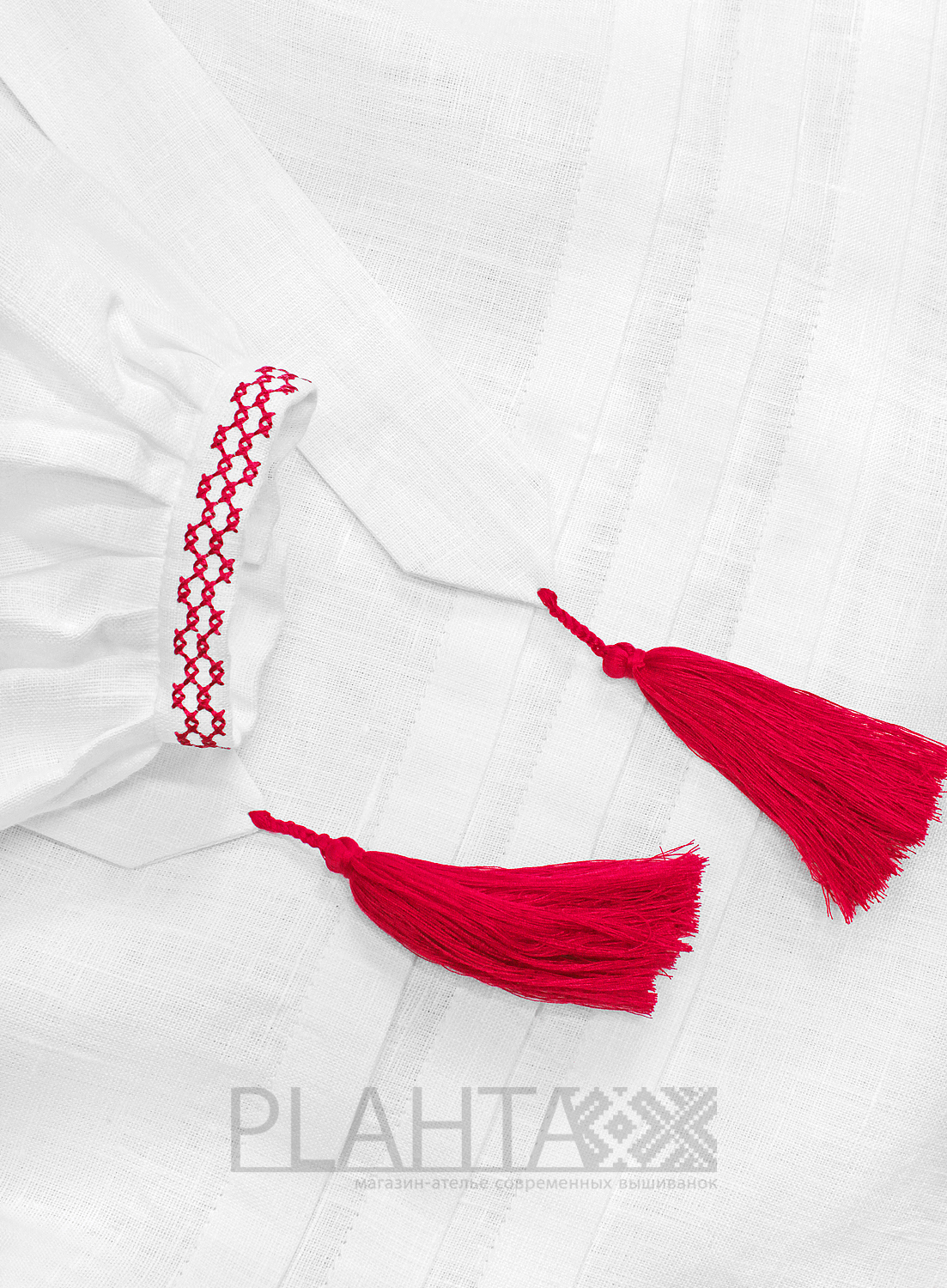Білий колір лляної матерії символізує силу, енергію, чистоту як фізичну, так і духовну. Символічно стара назва троянди - ружа - воно співзвучна древній назві Сонця і крові. «Цар-квітка» - це символ оновлення та безперервності руху сонця, доброзичливості і достатку, вогненної крові.