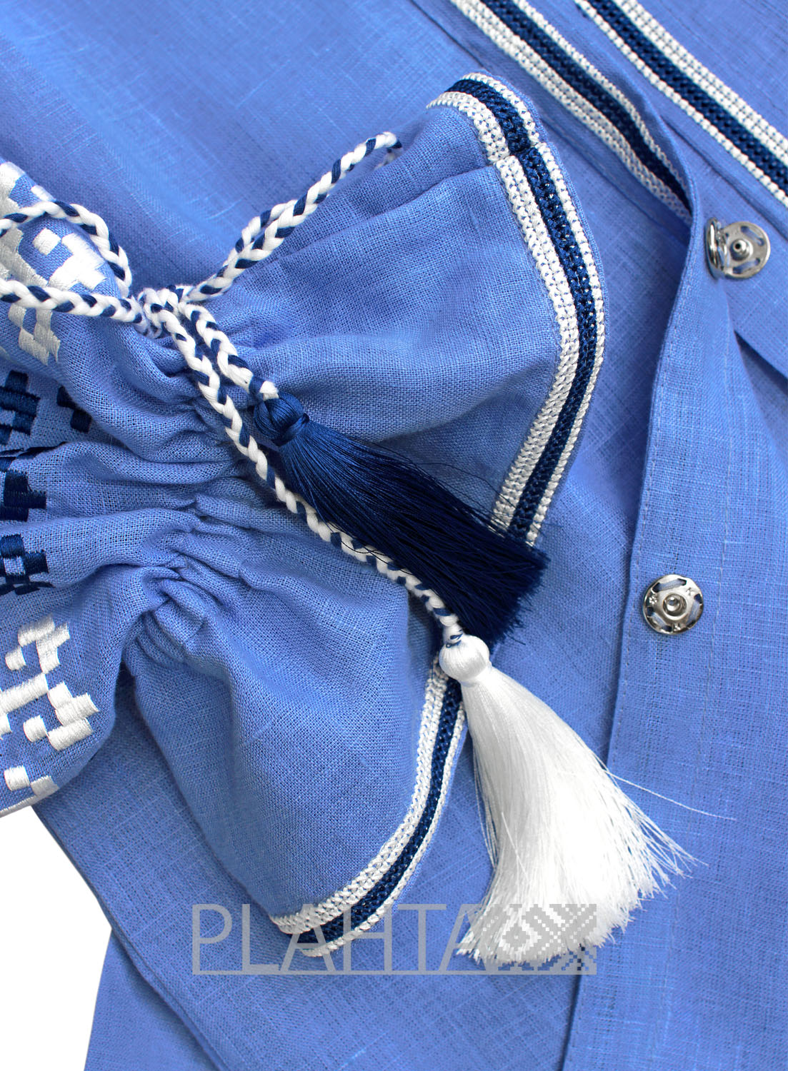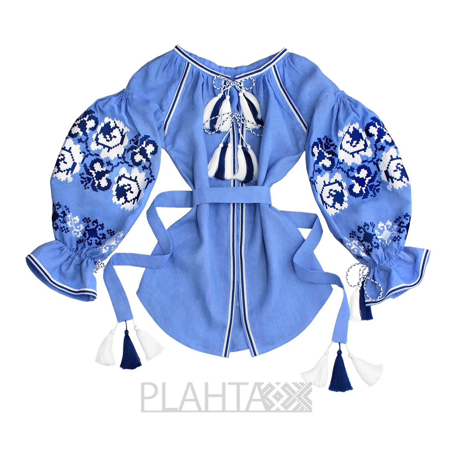 Довжина - 68 см. На планці - застібки-кнопки. Горловина і рукава виконані в традиційних українських техніках - "збиранка" та "пухлики". На манжетах - зав'язки-шнурки. Вишивка зроблена на промислових японських вишивальних машинах якісними нитками, що не линяють. Виріб зшитий вручну нашими майстринями.