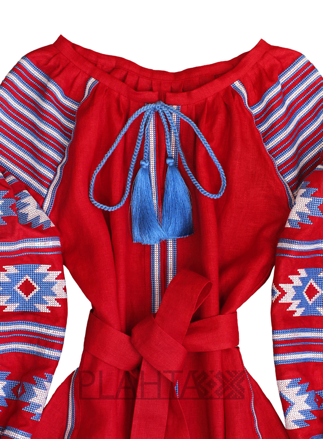 Вогняно-червона сукня-вишиванка "Вогняний Танок" - це чудове з'єднання пекучого українського колориту та сучасного тренду. Контрастні кольори й строгий геометричний орнамент виглядають  неймовірно стильно.