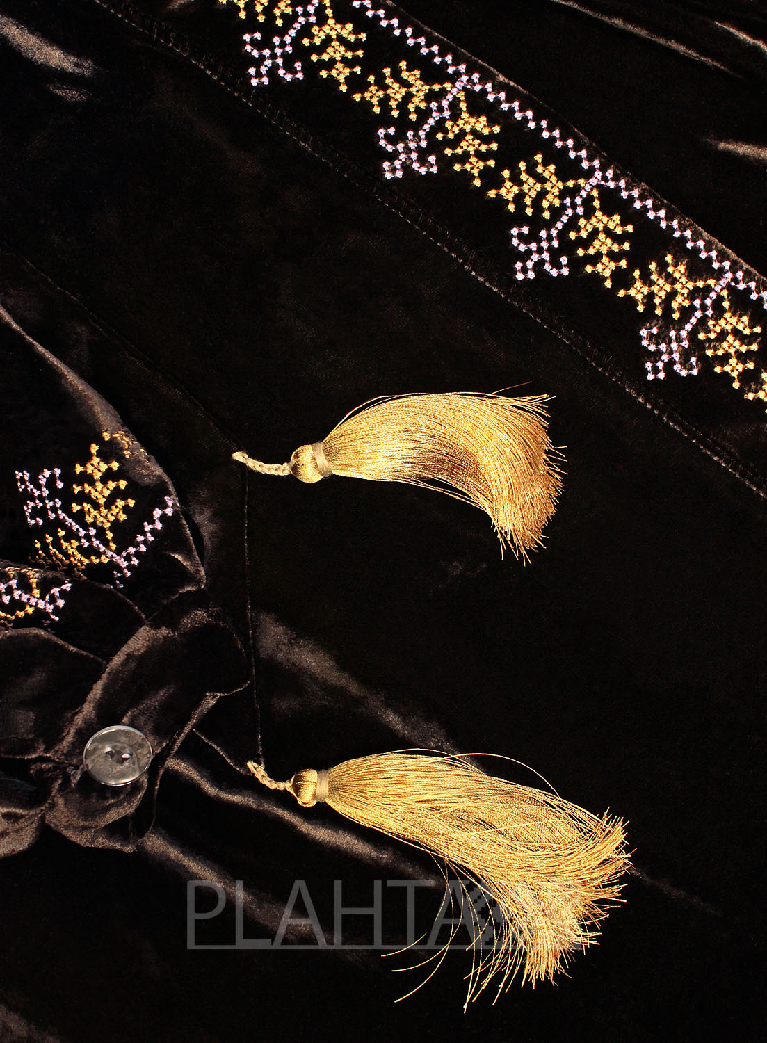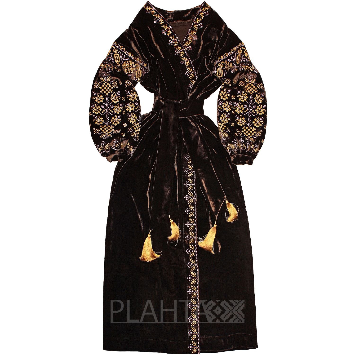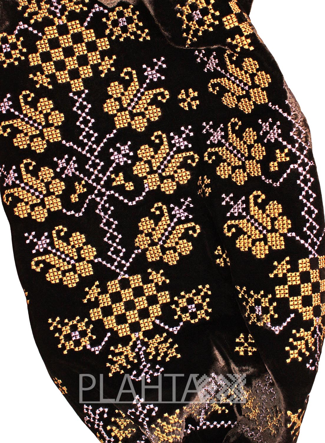 Оригінальна оксамитова сукня "Дівоча Зваба" підкреслить Вашу жіночу чарівність найліпшим чином! Розкішний лиснючий оксамит, жіночний умбровий колорит й традиційна вишивка українського мотиву виглядають вишукано та нетривіально.