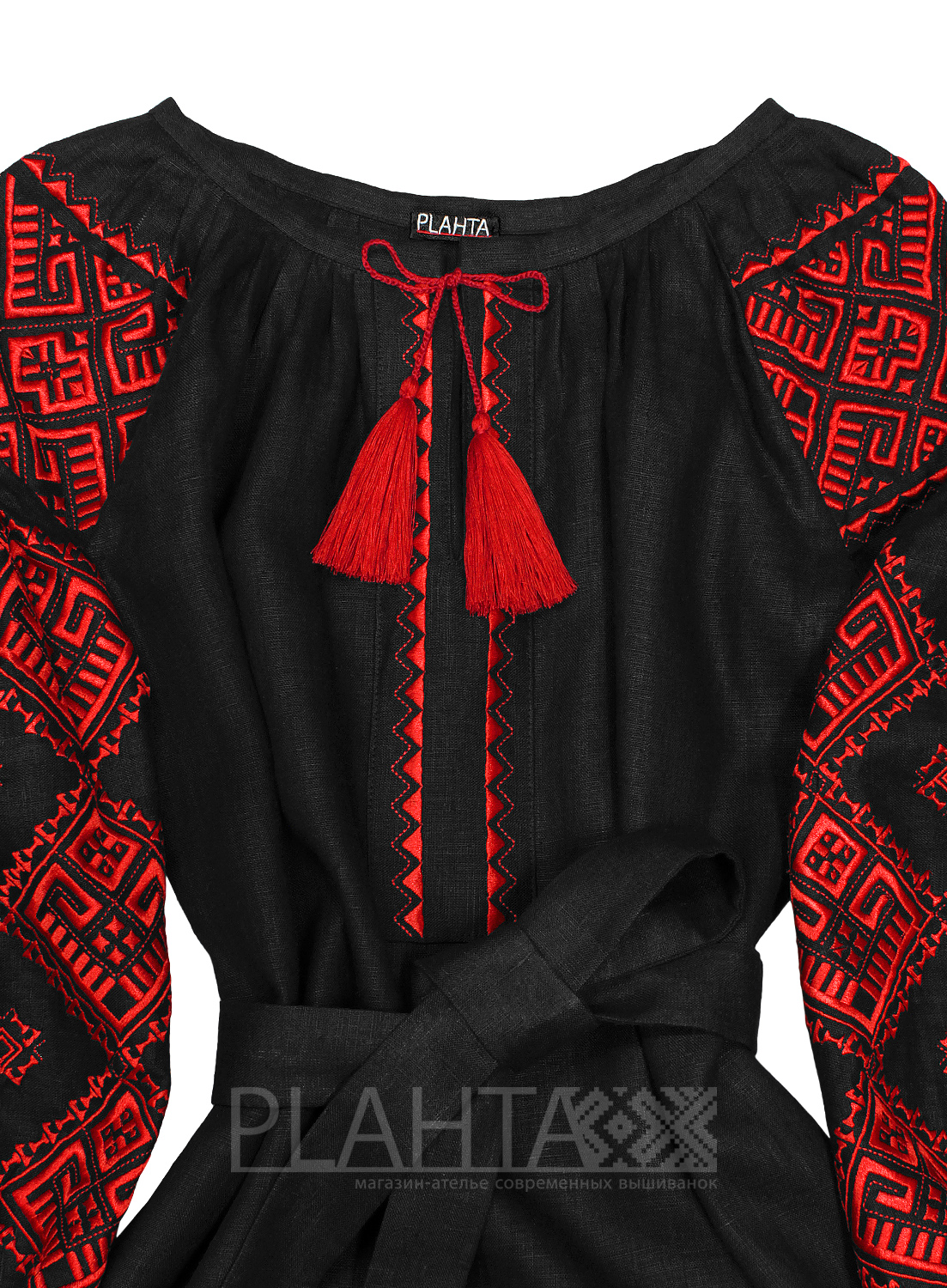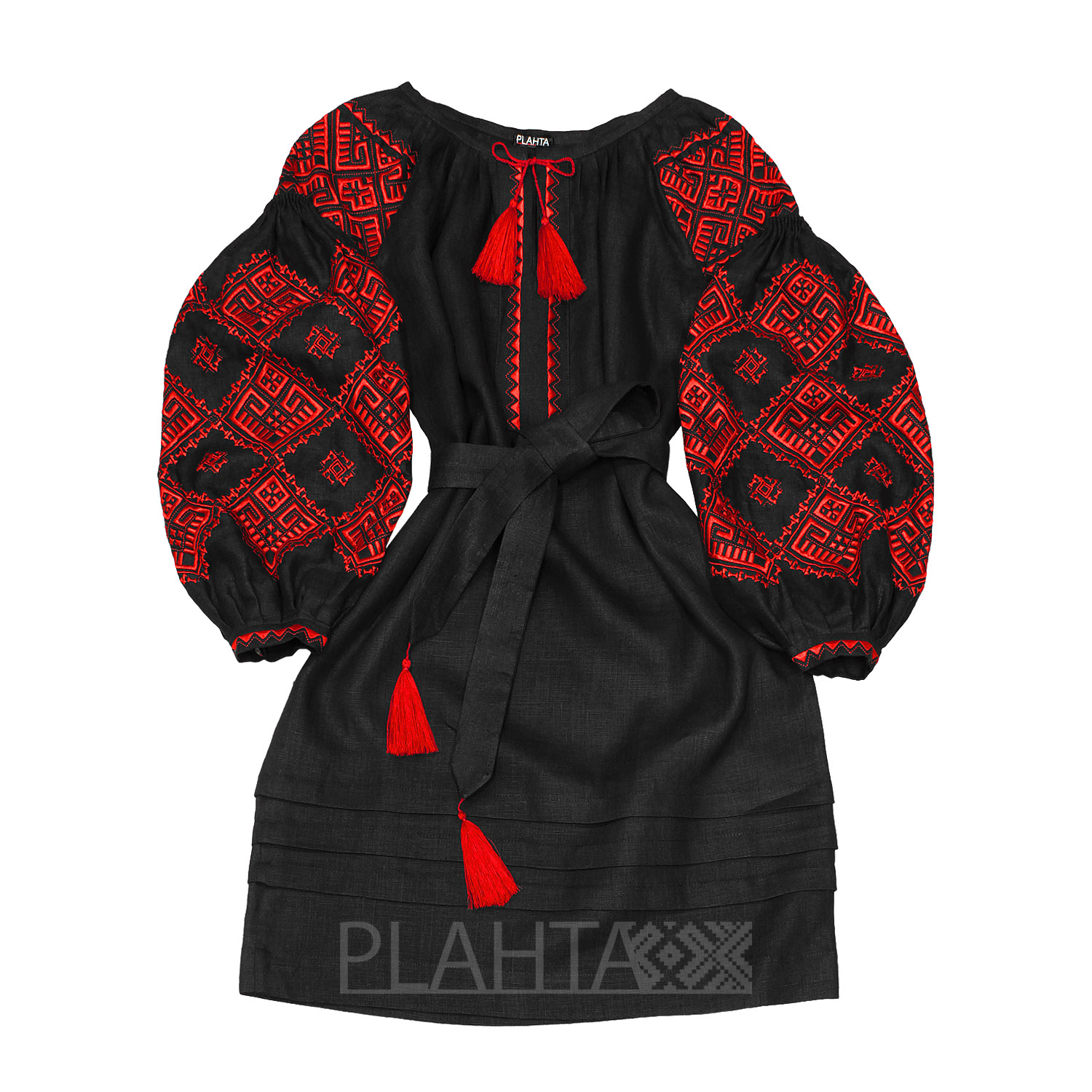 Сукня-вишиванка "Земне Кохання" є втіленням вдалого переплетення архаїки і сучасного стилю. Це не просто трендова річ, а й плаття-оберіг, яке завжди буде актуальне, завдяки контрастному поєднанню червоного і чорного, а також автентичної вишивки в українському стилі. Таке плаття прекрасно підійде для ділового та вечірнього жіночого образу, а також органічно впишеться в яскравий молодіжний стиль.
