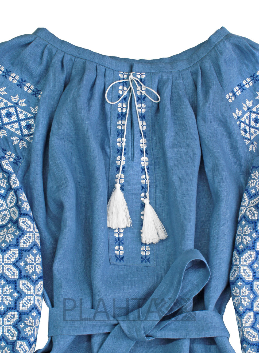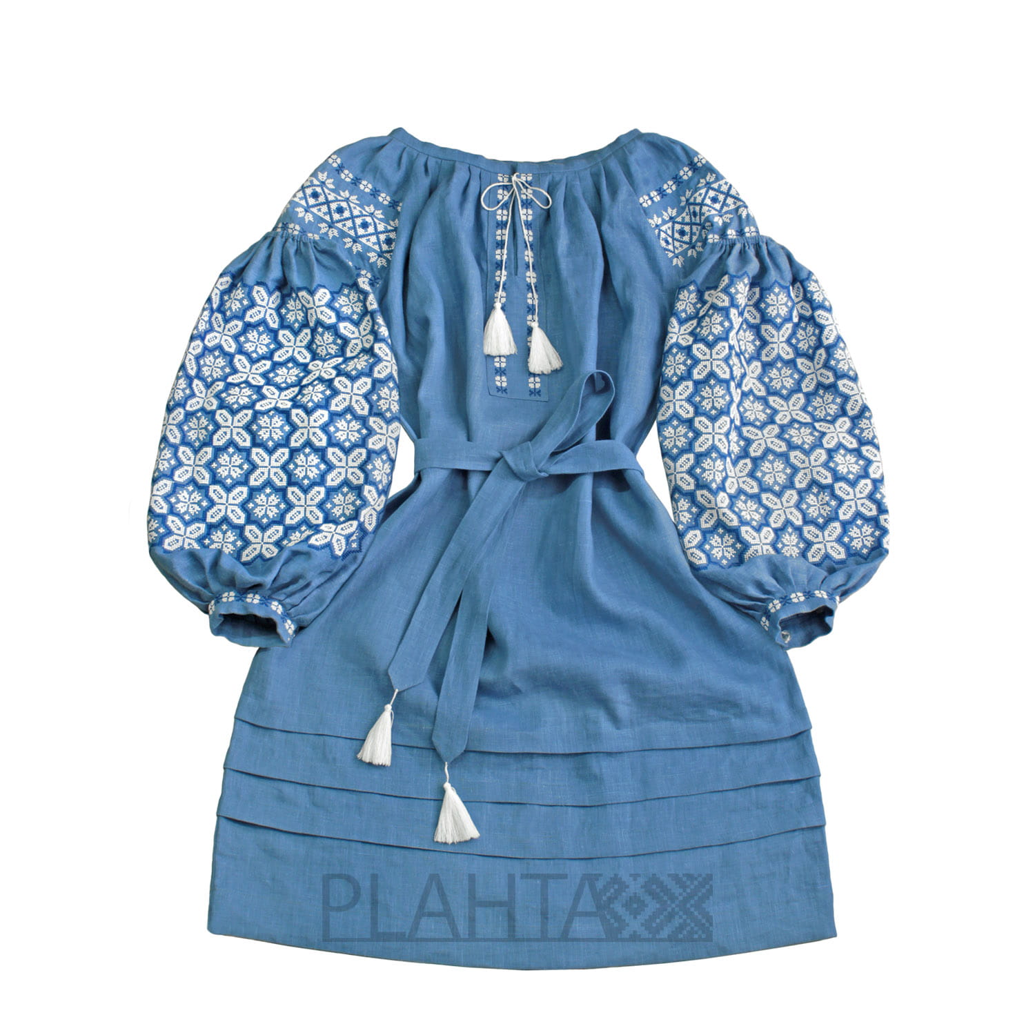 Ніжна сукня-вишиванка "Зоряний Туман" з колоритними деталями в холодних тонах - відмінне доповнення до гардероба сучасної жінки з тонким смаком. Пастельні тони вишиванки і традиційні українські геометризовані орнаменти відповідають передовим тенденціям. Незважаючи на нейтральний колорит, плаття-вишиванка "Зоряний Туман" - це яскраве і оригінальне доповнення стильного жіночого образу. Плаття-вишиванку можна використовувати як для ділових зустрічей або вечірнього виходу, так і в повсякденності, поєднуючи його з молодіжним стилем і аксесуарами.